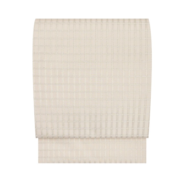 整然とした幾何学模様が全体に織り出された、切子ガラスの表面のようにも、メタリックにも見える、とてもお洒落な本場筑前博多織の八寸名古屋帯地です。 小さな菱重ねの模様がびっしりと並び、菱の中には十字の形が織り込まれ、とても立体的に見える不思議な模様の織りとなっています。 紡績糸を使わず、本絹の糸だけで織られたという証紙も付けられていますが、とてもしっかりとした打ち込みで、手に触れていても心地良く、きちんとした独特の美しさがあります。 これからのシーズンに単衣のお着物と合わせてお召しになりますと、大変お洒落な雰囲気になることが想像できます。 銀色寄りの白の色がとても綺麗で、実際にお召しになりますと、良い意味で目を引くことでしょう。 博多織の歴史はとても古く、起源は13世紀頃だそうですが、江戸時代には帯として織られていて、黒田藩から徳川幕府への献上品として納められ一躍全国的にも有名になったそうです。 その後も長い歴史の中、戦争を挟んで大変な時期もあったそうですが、人気の高さから需要もあり、織元さんも奮起して生産を再開され、特に近年では品質の更なる向上とデザインの多彩さに驚かされるものがあります。 こちらの帯ですと、袷の時期から単衣の時期までお召しいただけますので、ご着用期間は長いと思われます。 また、やわらかい素材のお着物にも、趣味系の紬のお着物にも合わせられますので、ご着用範囲も広いといえるでしょう。 これからのシーズンですと、地紋無地や小紋のお着物に合わせて、お茶のお席や和のお稽古の会、観劇やお食事の会などにお召しになるのも良いですし、大島紬や結城ちぢみ、塩沢お召などの単衣の紬系のお着物に合わせて、お友達とのお集まりやランチの会、コンサートや講演会、美術館やお買い物などにお出かけになるのも良いのではないでしょうか。 モダンな佇まいとパキッとした格好良さと、上質な絹糸が醸し出すパールのような光沢が大変魅力的な、大変おすすめの逸品です。 【お品物につきまして】 未仕立ての状態となっています。 お仕立て上がり時の長さは約370~375cmとなります。 お仕立てにはおよそ20日頂戴いたします。 特殊なお仕立てにも対応しておりますが、別途料金が発生する場合がございます。 お気軽にご相談ください。 地の色は生成り色「和色大辞典 #fbfaf5」https://www.colordic.org/colorsample/fbfaf5 をご参照下さい。 ◆未仕立て状態のサイズ 長さ:492 cm / 1 丈 3 尺 0 寸 2 分 太鼓巾:31 cm / 8 寸 2 分 ◆詳細 状態:未仕立て(お仕立て無料) 付属品:証紙 ◆商品コード:2020000045373