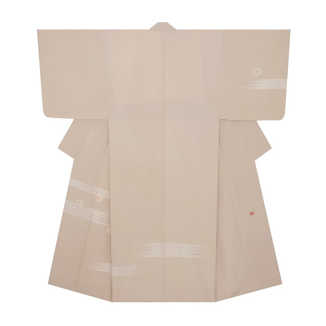 少しだけ光沢のあるしなやかな質感の綺麗なグレー・絹鼠色の地に、それよりほんの少しだけ濃い色の縞が交差して、中くらいの大きさの格子を構成していますが、それにさらにところどころにとても強く撚りを掛けられた地色と同色の糸が織り込まれて、変化のある格子の模様となった、無地感覚のとてもお洒落なお着物です。 地模様のように格子が織り込まれていますが、そのわずかな濃淡によって、ニュアンスのある面白い表情となっています。 どこかの産地の紬というよりは、かなり練られたデザインでつくられていることからも、作家物ではないかと思われますが、何も手掛かりがなく、お品物の上質さの割にはとてもお値打価格とさせていただいております。 透明感のある格子の模様がリズミカルに織り出され、存在感を発揮して綺麗な光沢と共に輝いているようです。 こちらのお着物ですと、帯は本当にいろいろと合わせられると思いますので、ご用途やお出かけ先によって、着こなしを変えてお楽しみいただけます。 季節のものをモチーフにしたような手描きや友禅染、刺繍のあしらわれたような帯などを合わされるのも良いですし、紅型染や型絵染、更紗模様などの帯を合わされたり、綴れ織やすくい織などのポイント柄の帯を合わされたり、間道や吉野格子、めがね織や花織などの帯を合されたりするのも良いのではないでしょうか。 季節も問わず、年齢的にも幅広く、きっと長くご愛用いただけることと思える、とても素敵な大変おすすめの一点です。 【お品物につきまして】 リサイクル品ですが、シミや汚れなどはなくとても良い状態となっています。 衿にはしつけ糸がついています。 裄丈を1.5cm出す事が可能です。 お直し等につきましては、お気軽にご相談くださいませ。 地の色は絹鼠「和色大辞典 #dddcd6」https://www.colordic.org/colorsample/dddcd6 をご参照下さい。 ◆サイズ 身丈:169 cm /4 尺 4 寸 7 分 裄丈:67.8(+1.5) cm /1 尺 7 寸 9 分 袖丈:49.2 cm /1 尺 3 寸 0 分 前巾:25.3 cm /6 寸 7 分 後巾:29.5 cm /7 寸 8 分 衽巾:15.2 cm /4 寸 0 分 褄下:78 cm /2 尺 0 寸 6 分 袖巾:34.2 cm /9 寸 0 分 ◆詳細 状態:リサイクル品 付属品:なし ◆商品コード:2020000044840