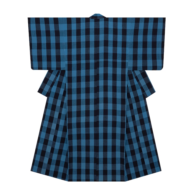 弁慶格子 藍染 結城ちぢみ袷着物【未着用品】