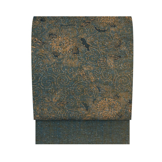 志ま亀 菊唐草の模様 手描友禅開名古屋帯【未着用品】