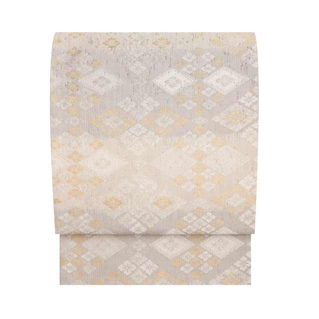 段熨斗目に花菱文様 錦織全通袋帯【未着用品】