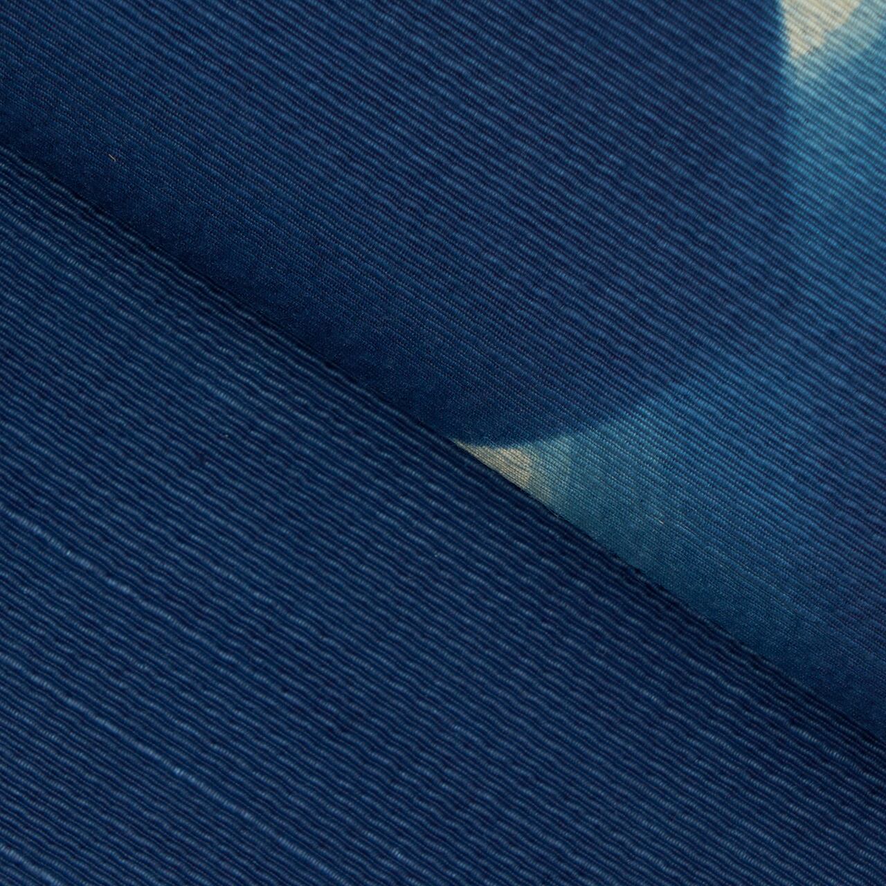 日本工芸会正会員 松原與七 繧繝彩色藍形染 木綿名古屋帯【未着用品】