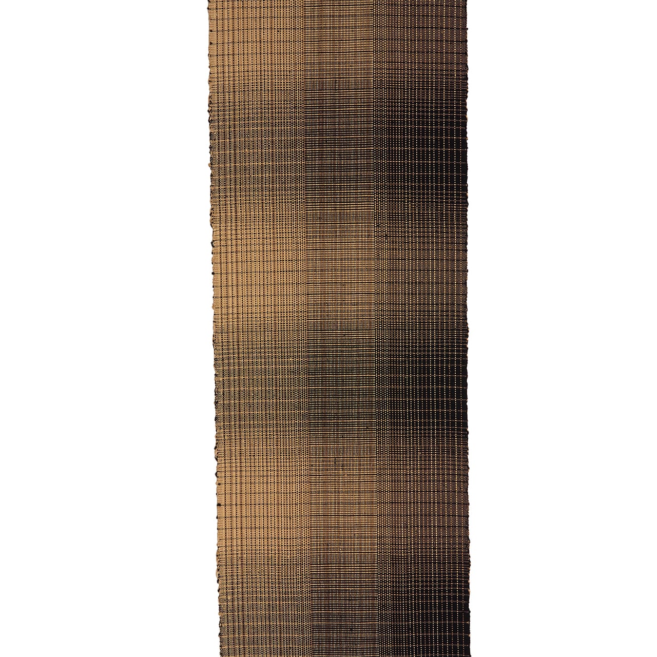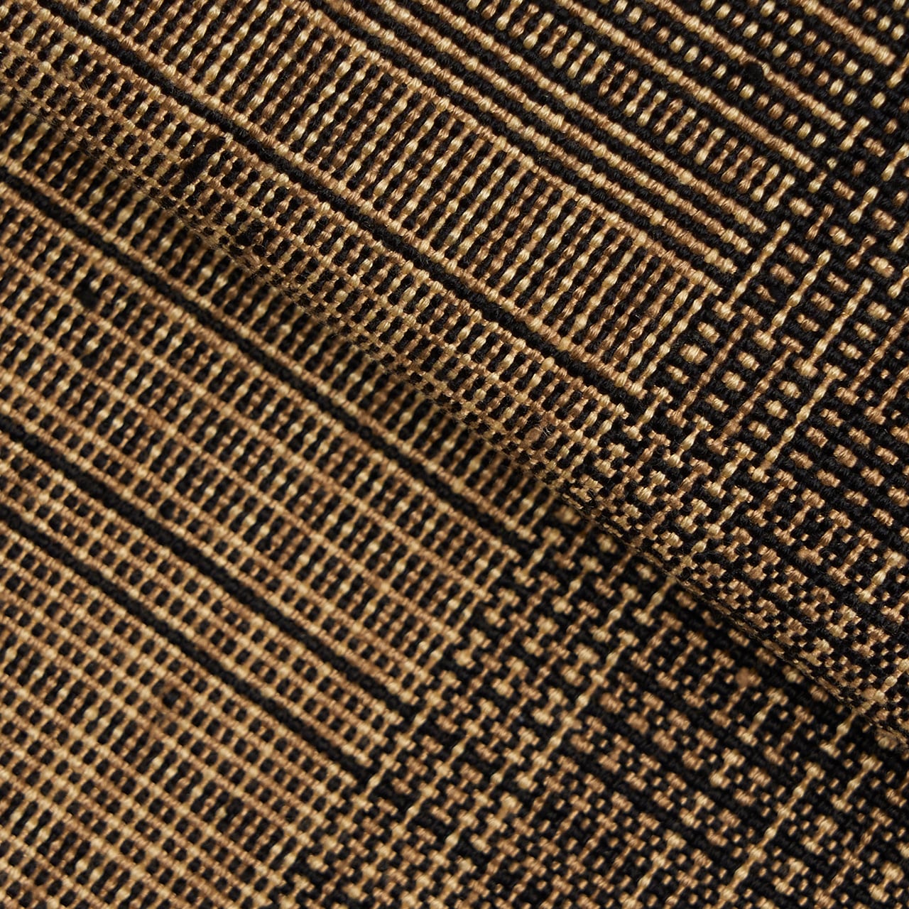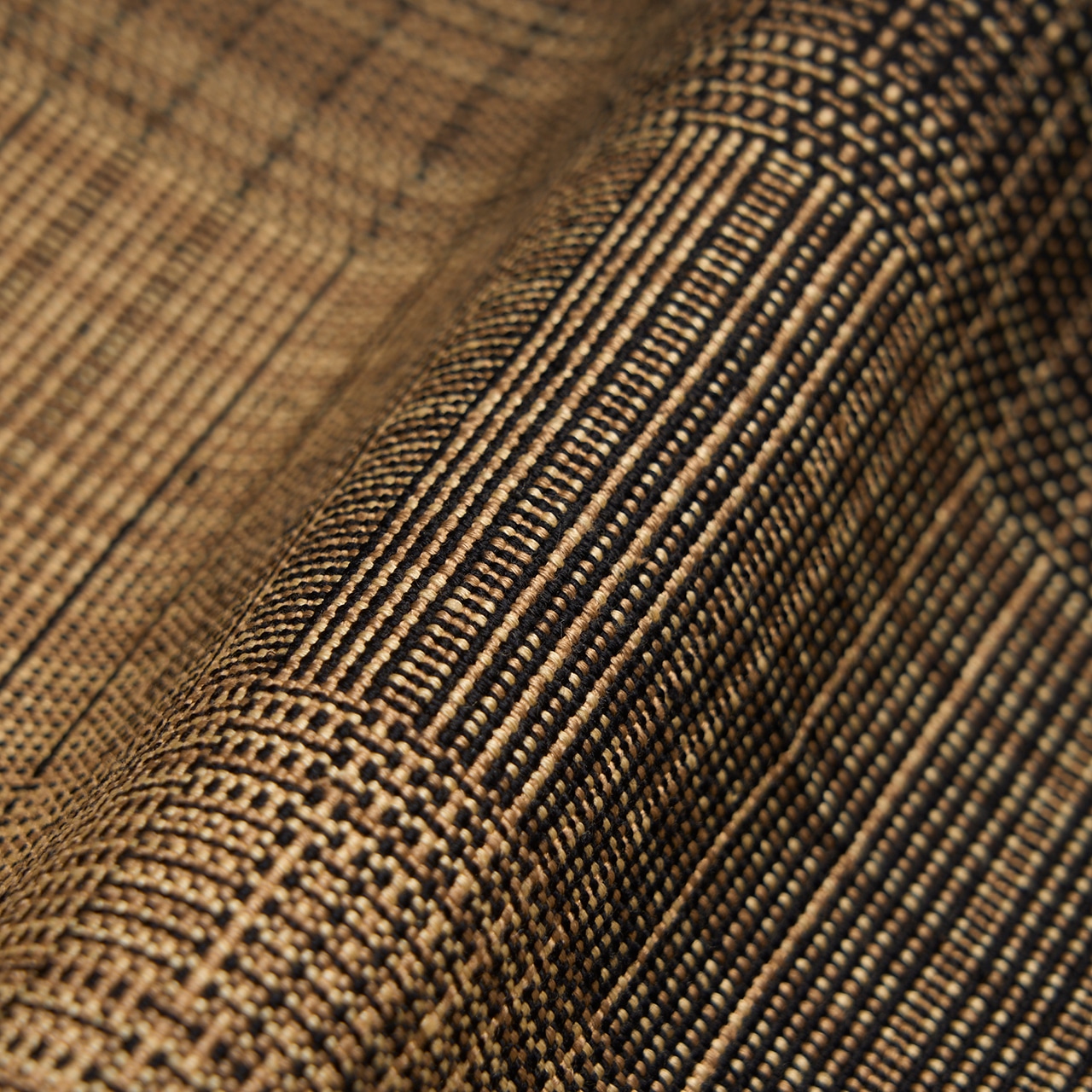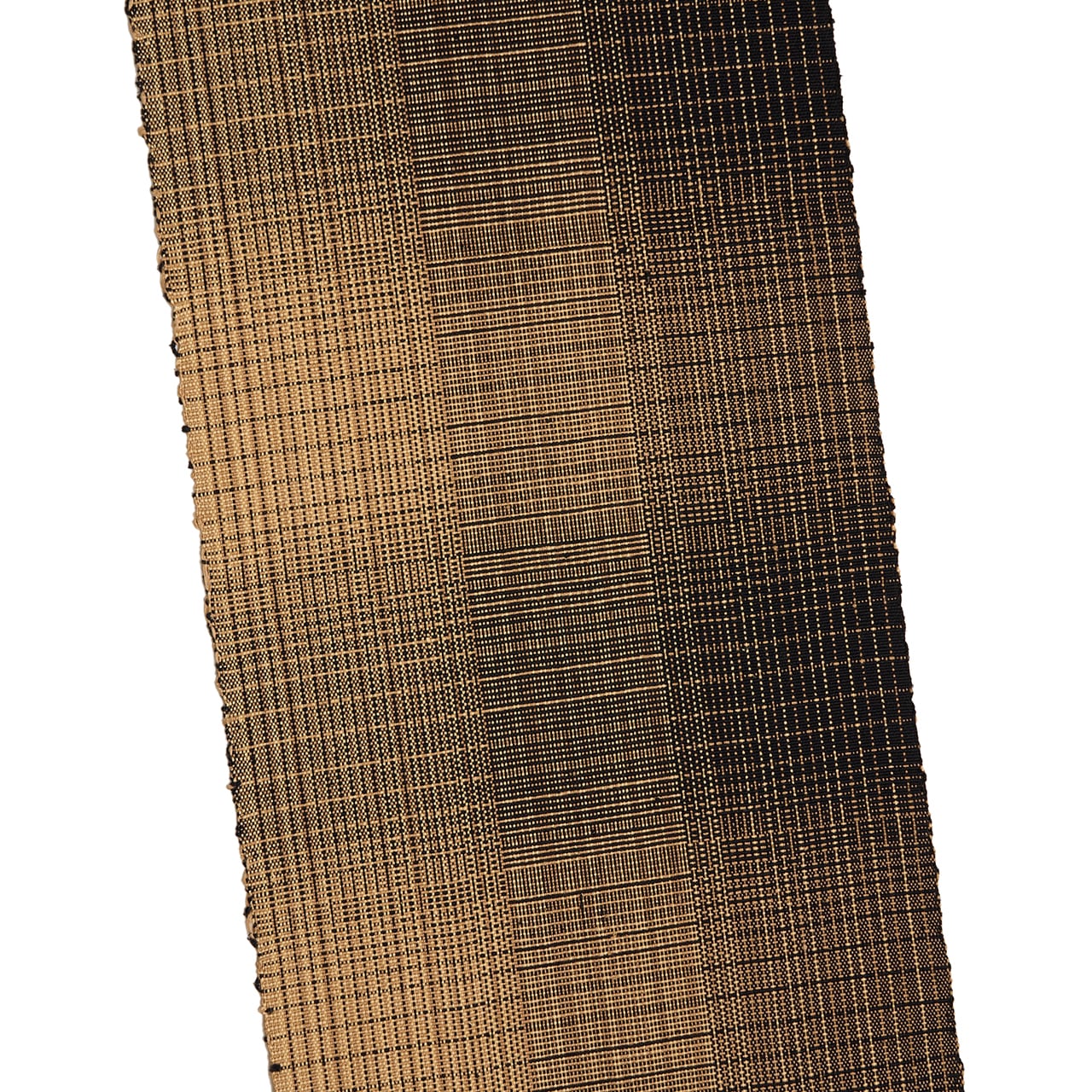 左側は薄茶色が多く、右側は黒が多く使われていて、全体的にはグラデーションのようになっているのもお洒落な印象ですし、横段も少し変り織になっていて、算崩しのような雰囲気にも見えます。