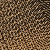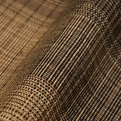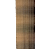 中間の薄茶・榛色の糸を中心にして、それより少し濃い茶・黄枯茶色と黒の糸を交えて、少しランダムに色が並んで変り格子のような模様を構成している、手織りの紬の味わいのある八寸名古屋帯です。