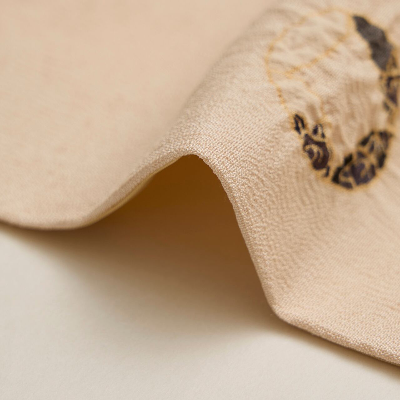 こちらのお着物ですと、有職文様や名物裂的な帯を合わせてお茶のお席や和のお稽古の会などにお召しになるのも良いですし、お食事の会や観劇、音楽鑑賞などにも良いと思います。