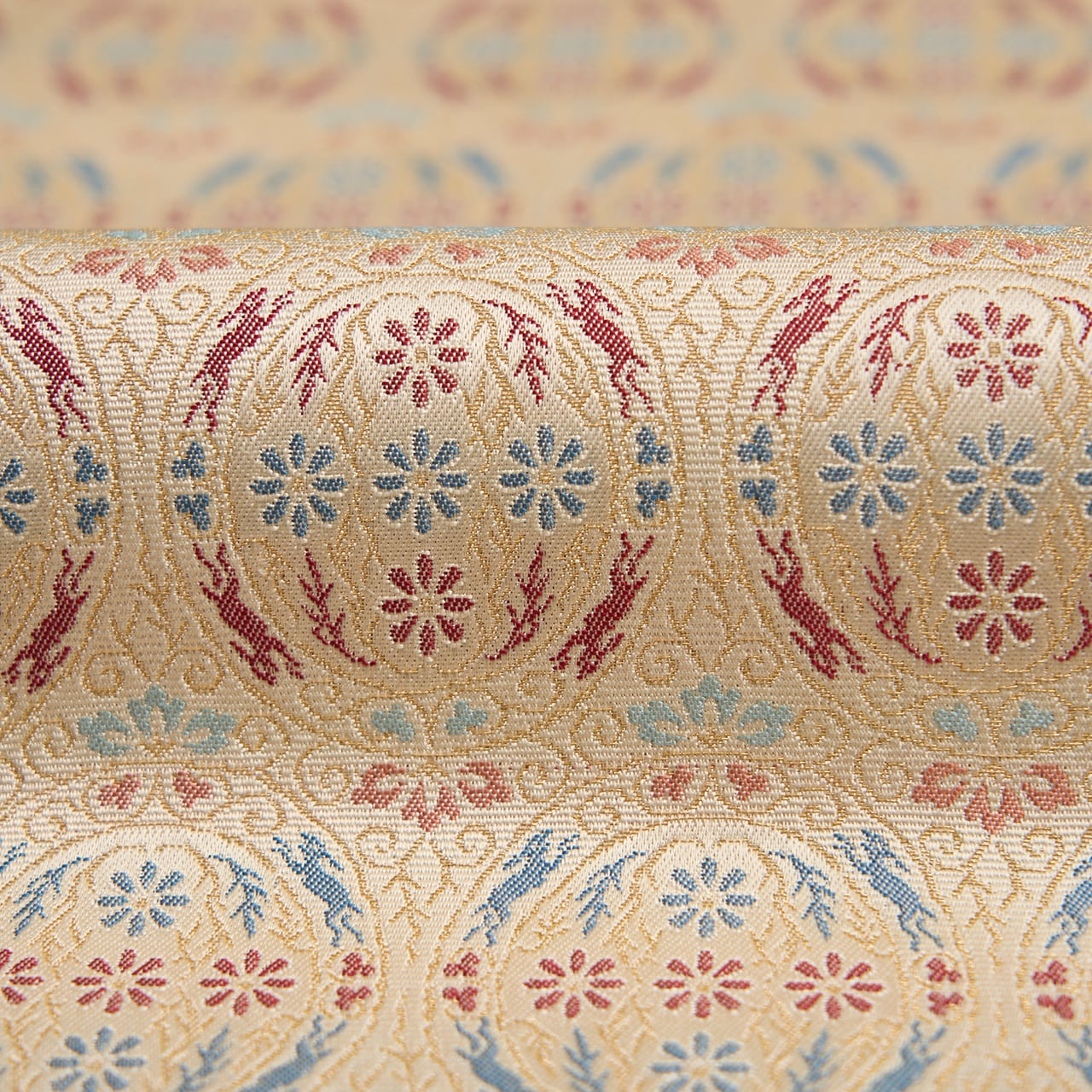 うさぎと花の丸紋 名物裂文様 開名古屋帯【中古】