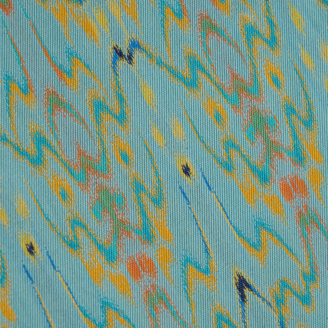 その経絣の感触を活かしながら経錦で表現されていて、さらにそれに獅噛文を加えられていることで、少し表情豊かな華やかさも感じられるようです。
