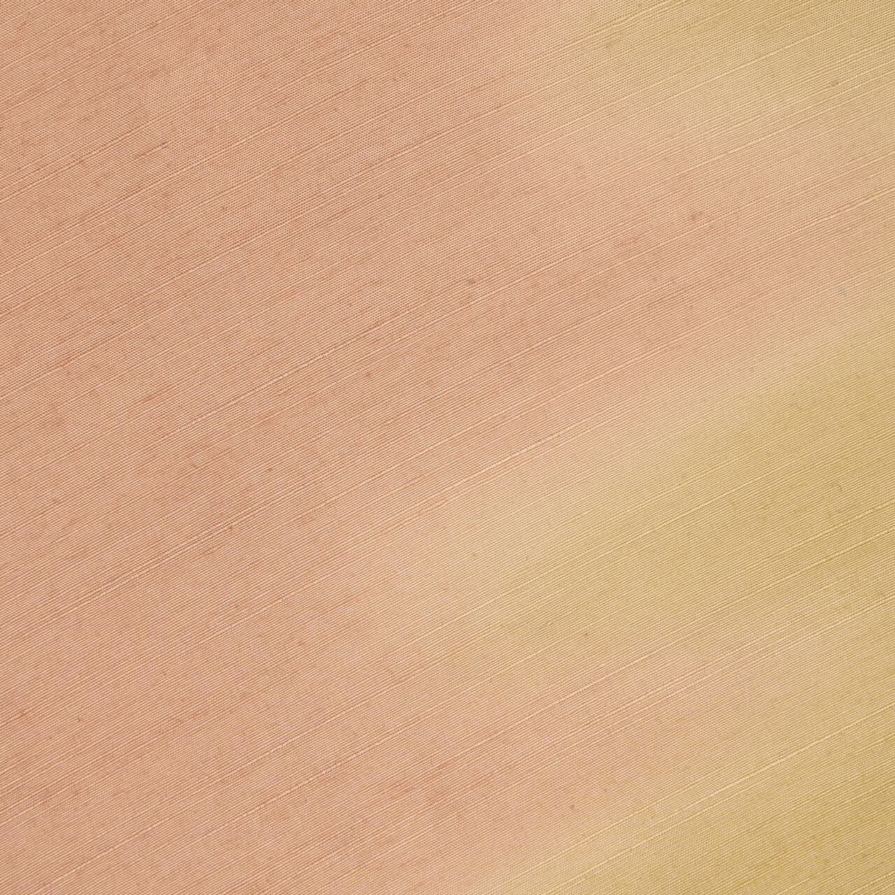 緯に節のある手紡ぎの紬の糸で織られた風合いの良い生地が、タレからは少しだけ緑味の感じられる淡い黄色・枯草色に染められ、お太鼓からは紅花染と思われる綺麗なピンク・一斤染色に切り替えられ、その境目は霞暈しの淡い色合いとなっていて、それが胴まで続いています。