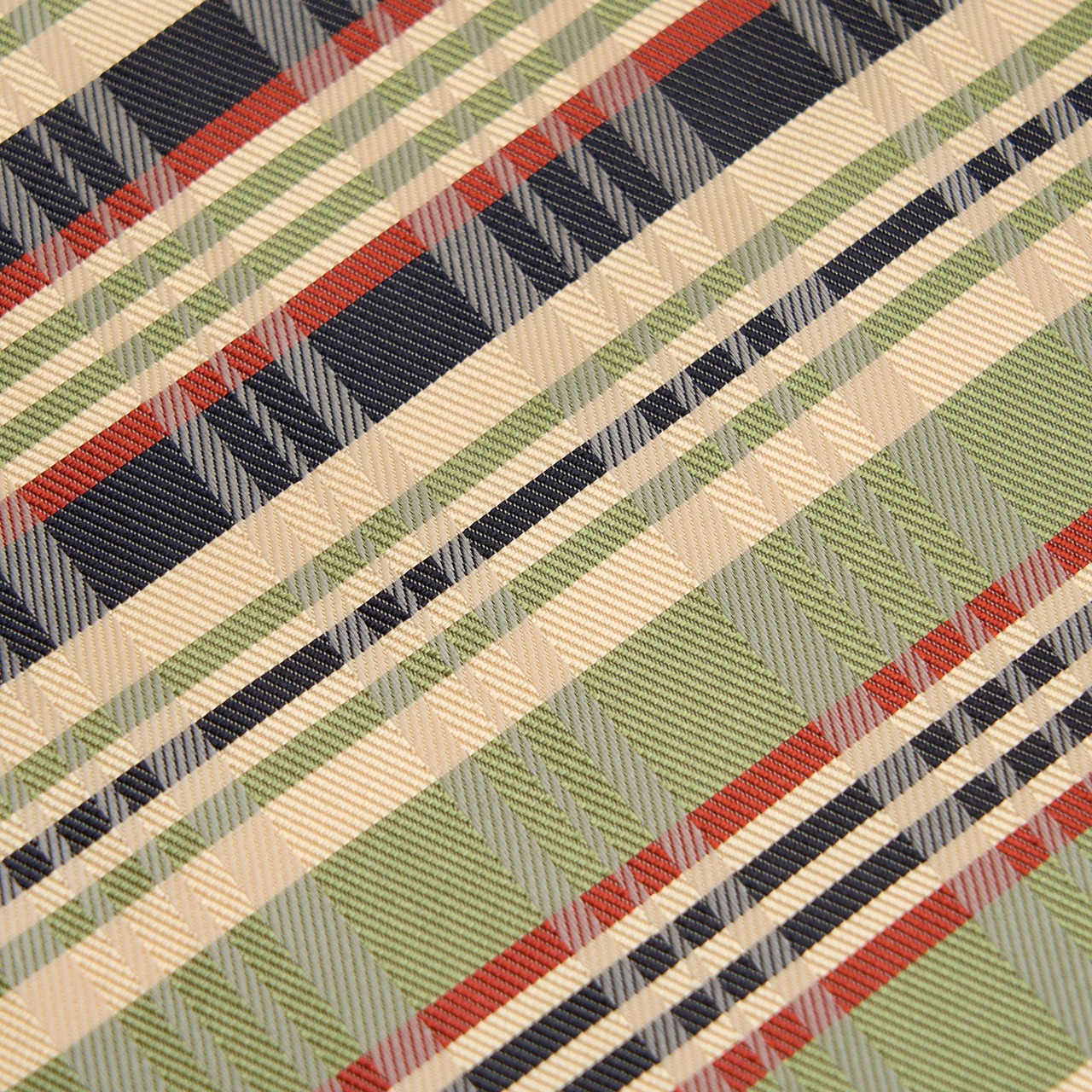 能装束の厚板格子に取材したものと思われる織りと色使いで、気品のある帯となっています。