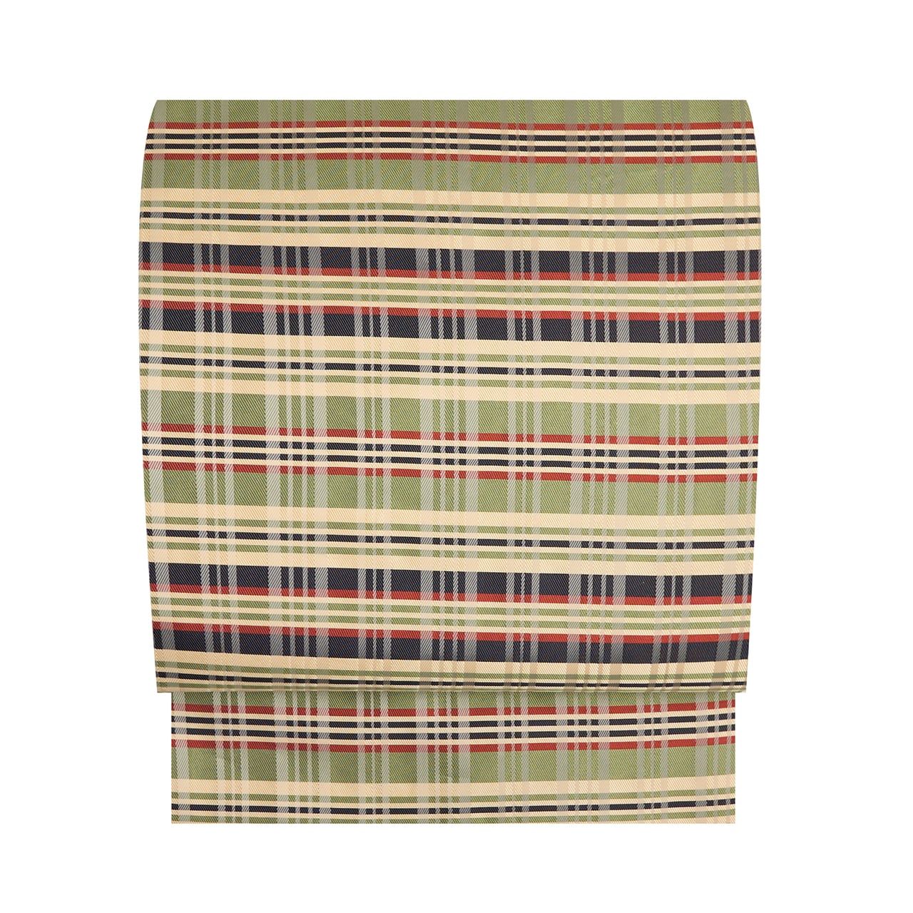 人間国宝 喜多川俵二 厚板格子 名古屋帯【中古】