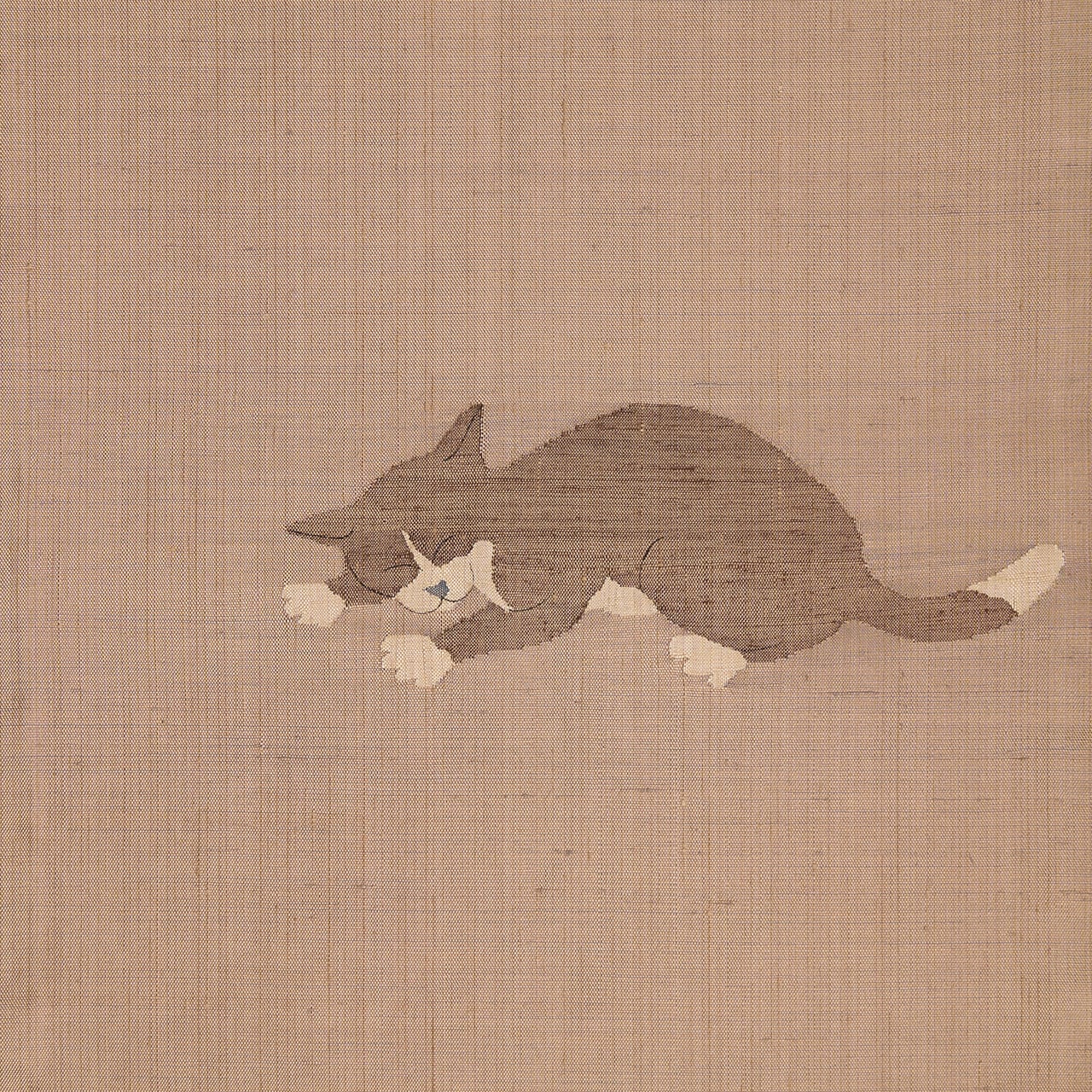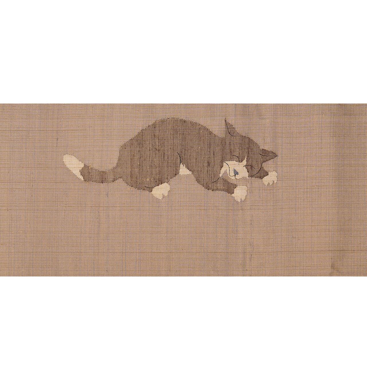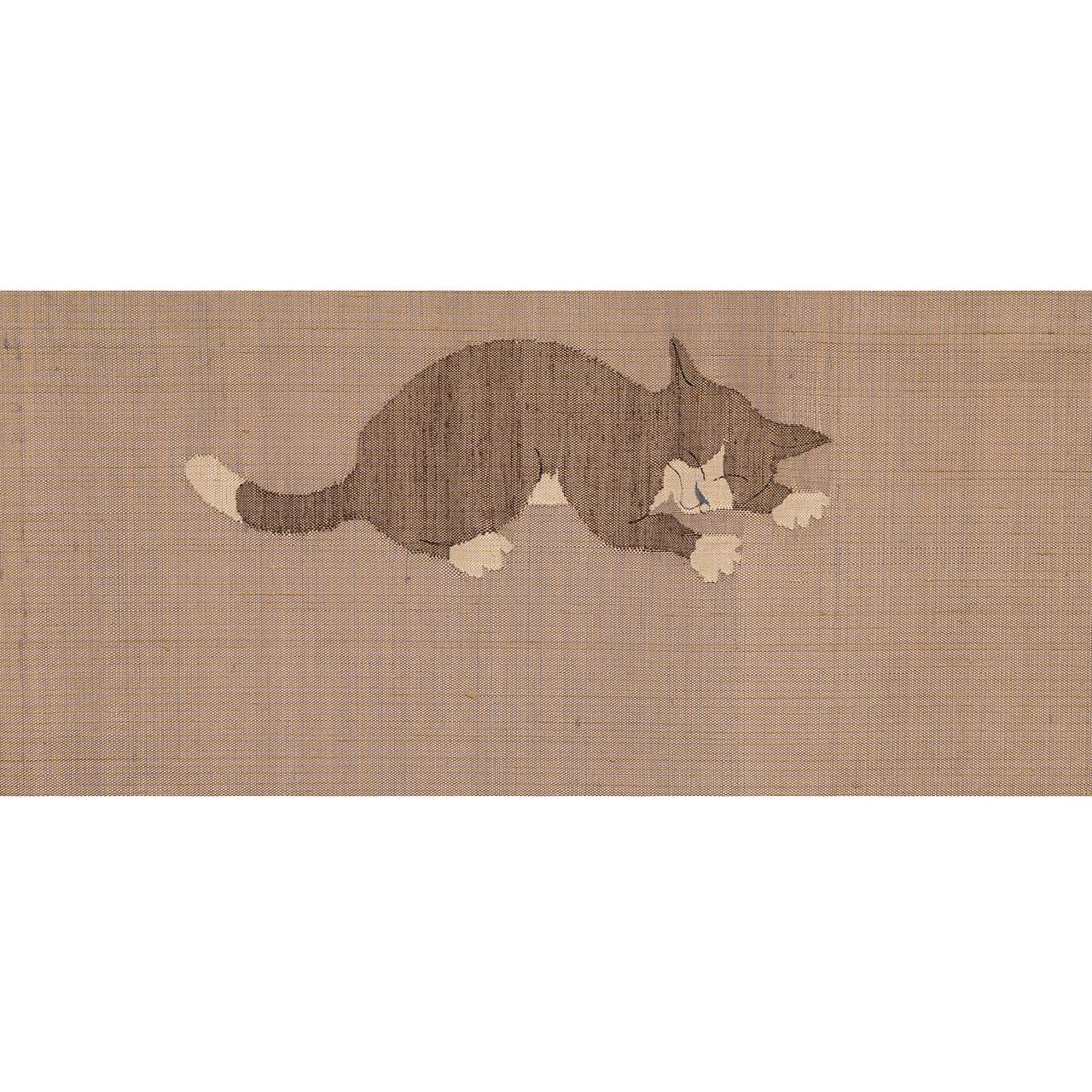 こちらはおそらく小千谷の方でつくられたものと思われますが、丁寧なすくい織で表されたねこちゃんは特徴をよくつかんでいて、のどかな時間が流れるような素敵な雰囲気を持った帯となっています。