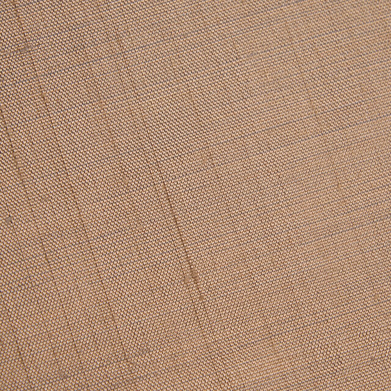 細い糸をたくさん使って織られたような少し光沢のある、そして少し赤味のある薄茶・茶鼠色のサラッとした紬地に、気持ち良さそうに眠るねこの姿がすくい織で表された、とてもシックな色合いがお洒落な雰囲気となった九寸名古屋帯です。