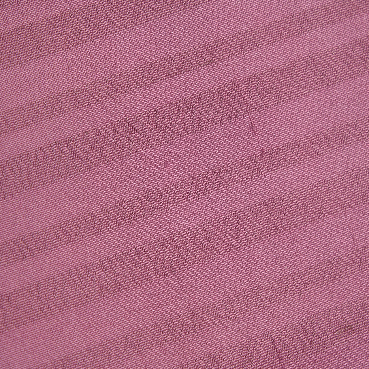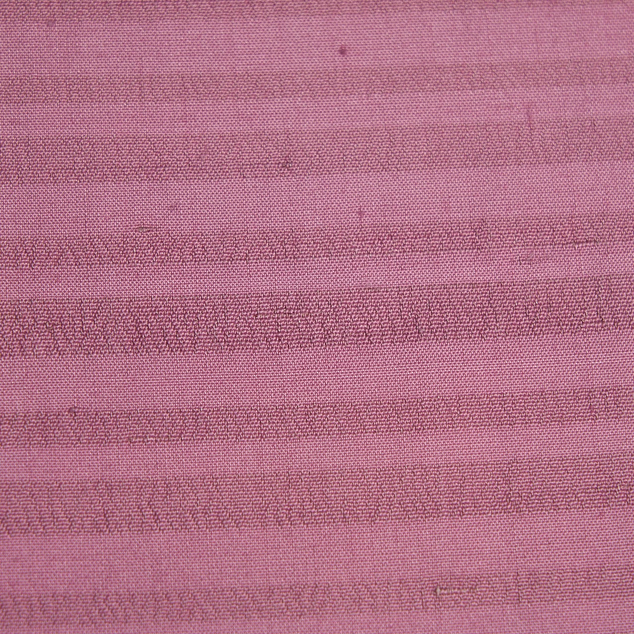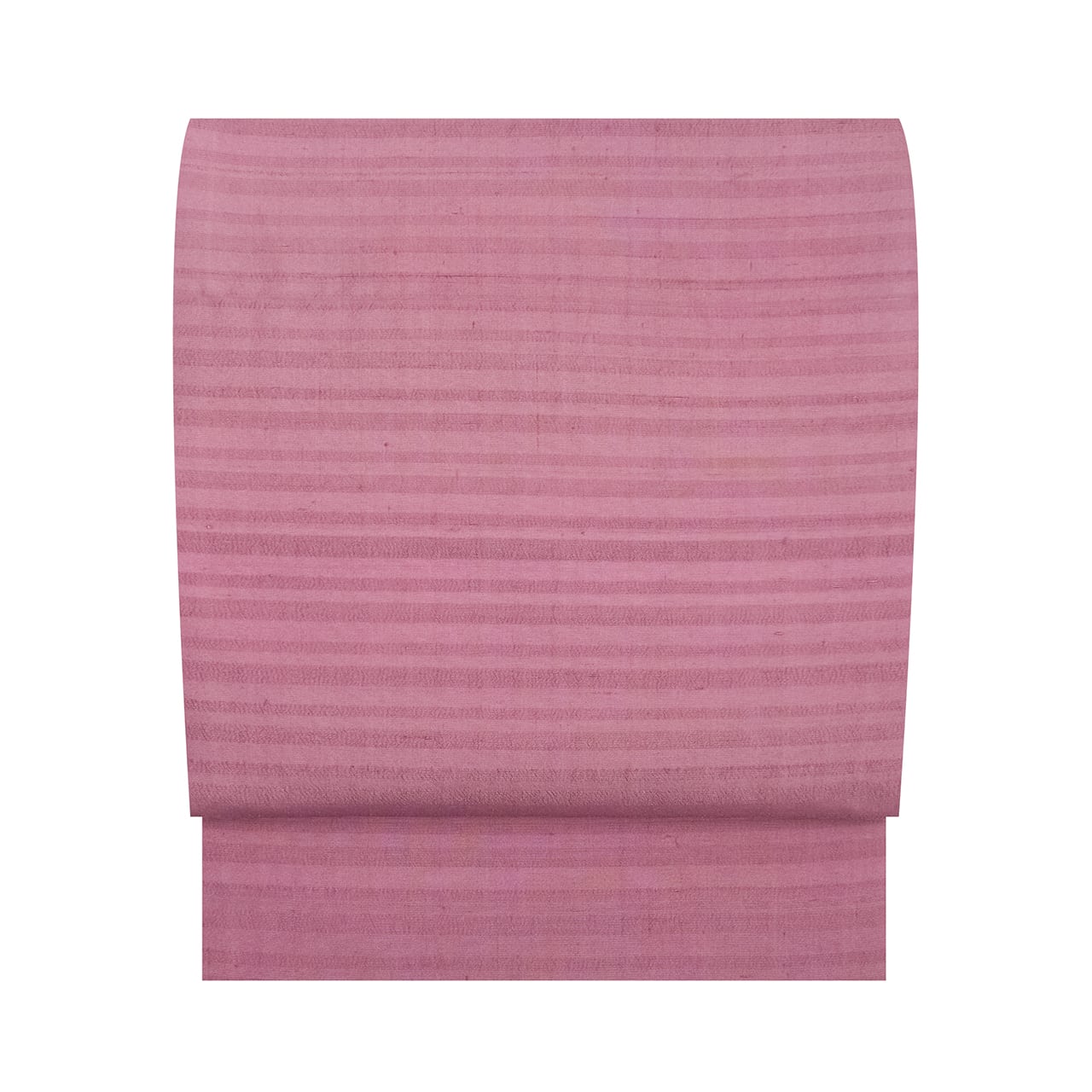 伊と幸さんオリジナルの横段のしじら織風の生地が、少し赤味のある淡い紫・京紫色に染められた、コチニール染めならではの味わいのある素敵な無地の九寸名古屋帯です。