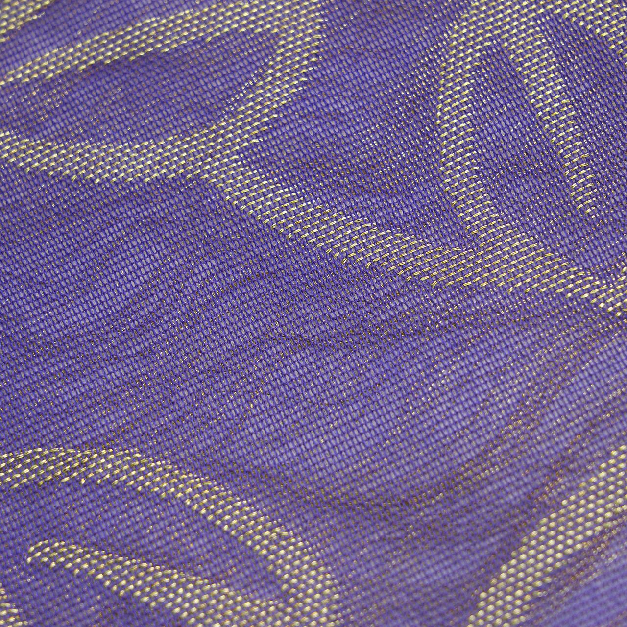 蔓やお花や葉の輪郭には極細の金糸が使われていて、それが織られて裏側に渡っている糸が表にも少し透けて見えて、角度によってキラッと光るように見えるのもお洒落です。