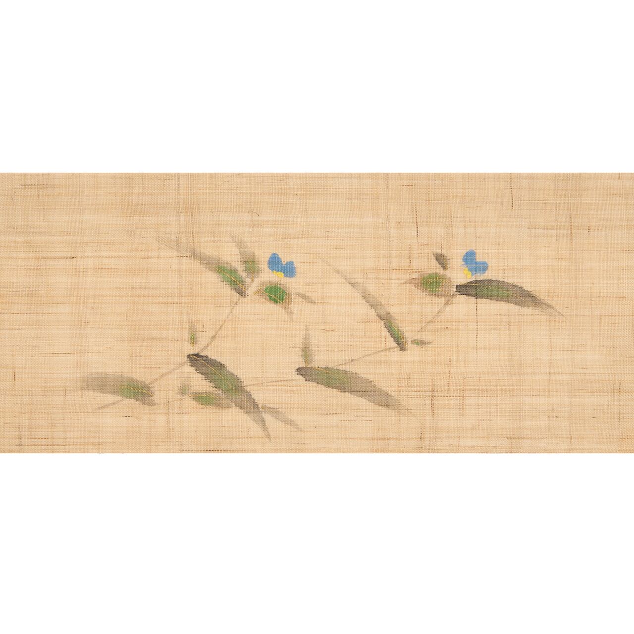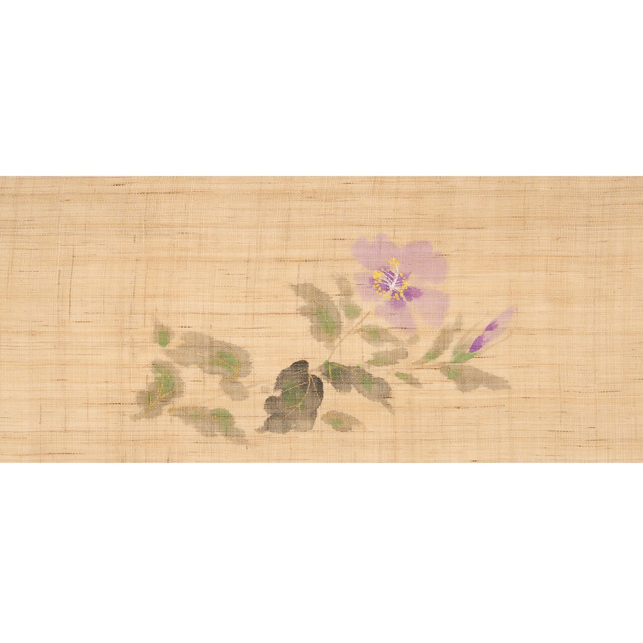 桐山紫香 芙蓉とツユクサの花 手描麻夏名古屋帯【未着用品】