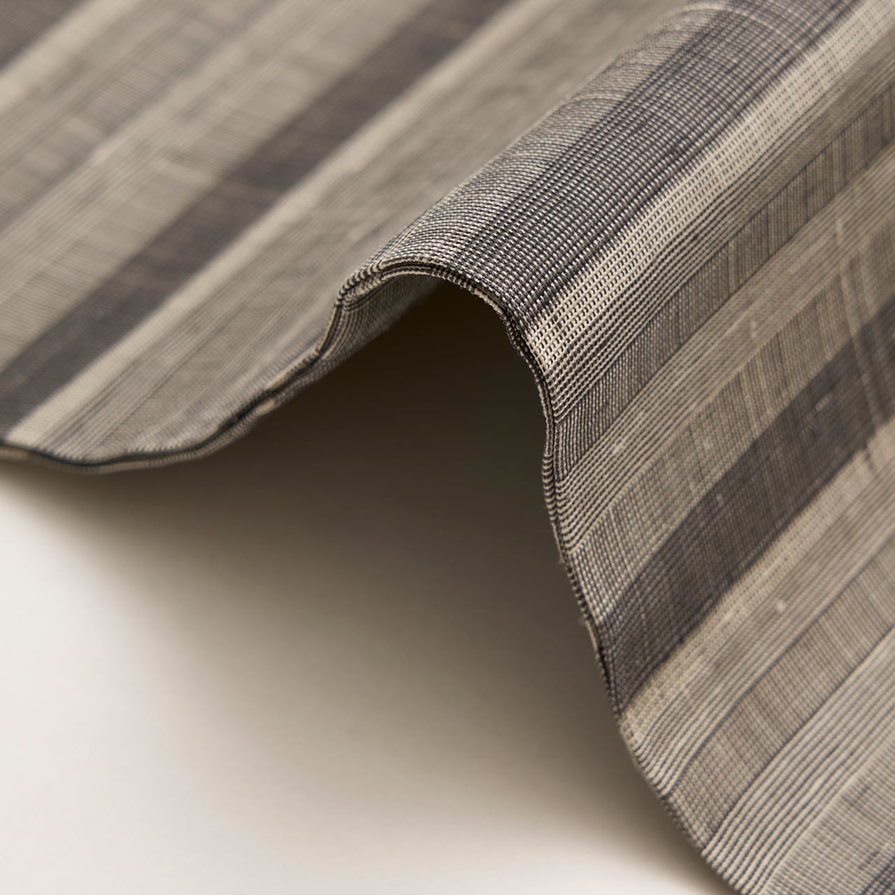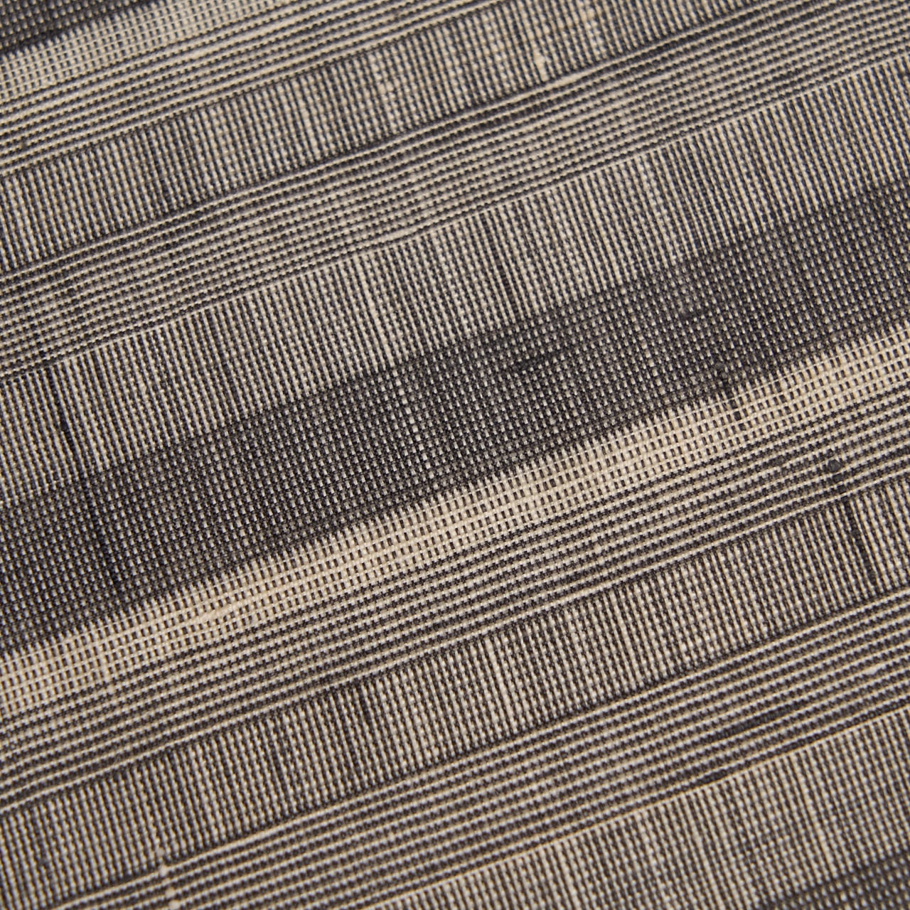 淡いグレー・鈍色に染められた経緯手績みの苧麻の糸で、約1cm幅に横縞と縦縞が交互に織り出されています。