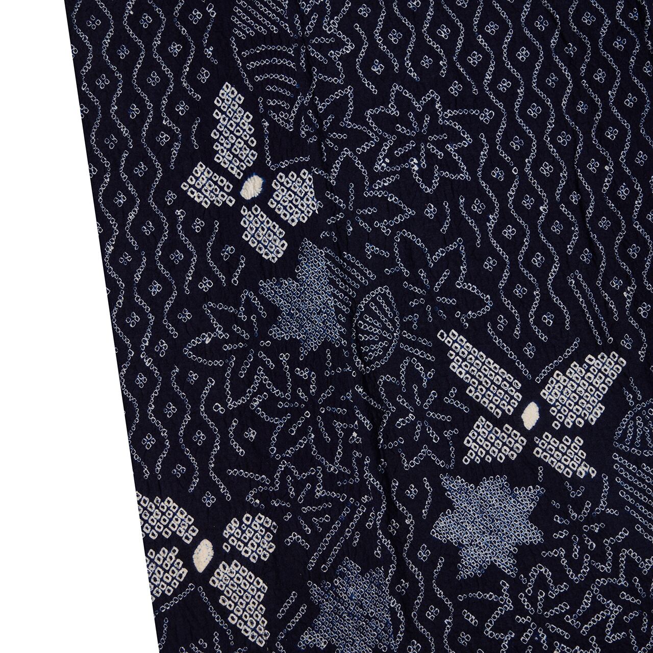 蝶々と団扇の模様 総絞り 木綿浴衣【中古】