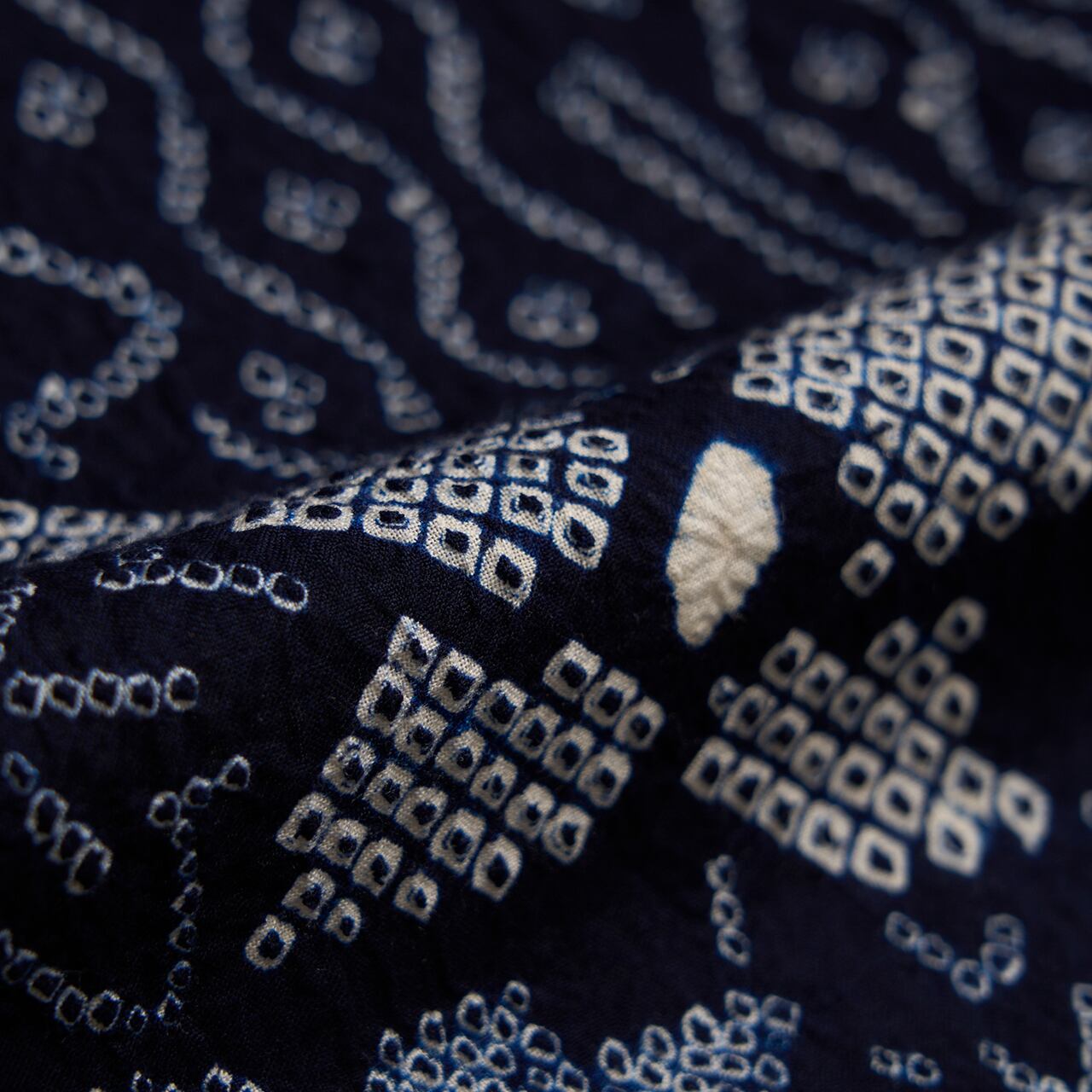 藍に白の絞り染めの浴衣はとてもすっきりとした印象で、伝統的な良さと安心感、さらにお誂え感と高級感もあります。