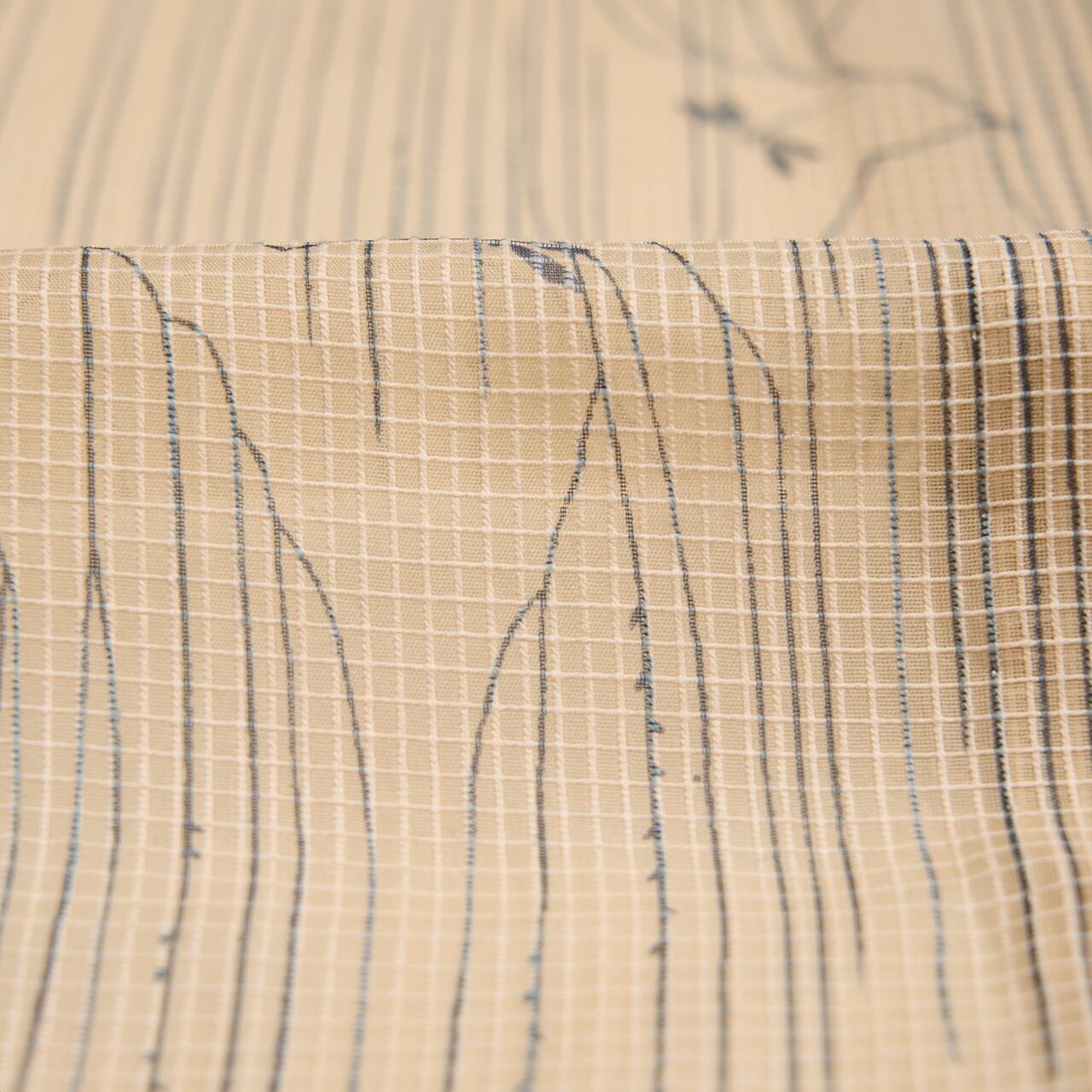 絹紅梅ならではの程よい透け感と、流れ落ちるような柳の枝の描写とがうまくマッチして、清々しさのあるとてもお洒落なお着物となっています。