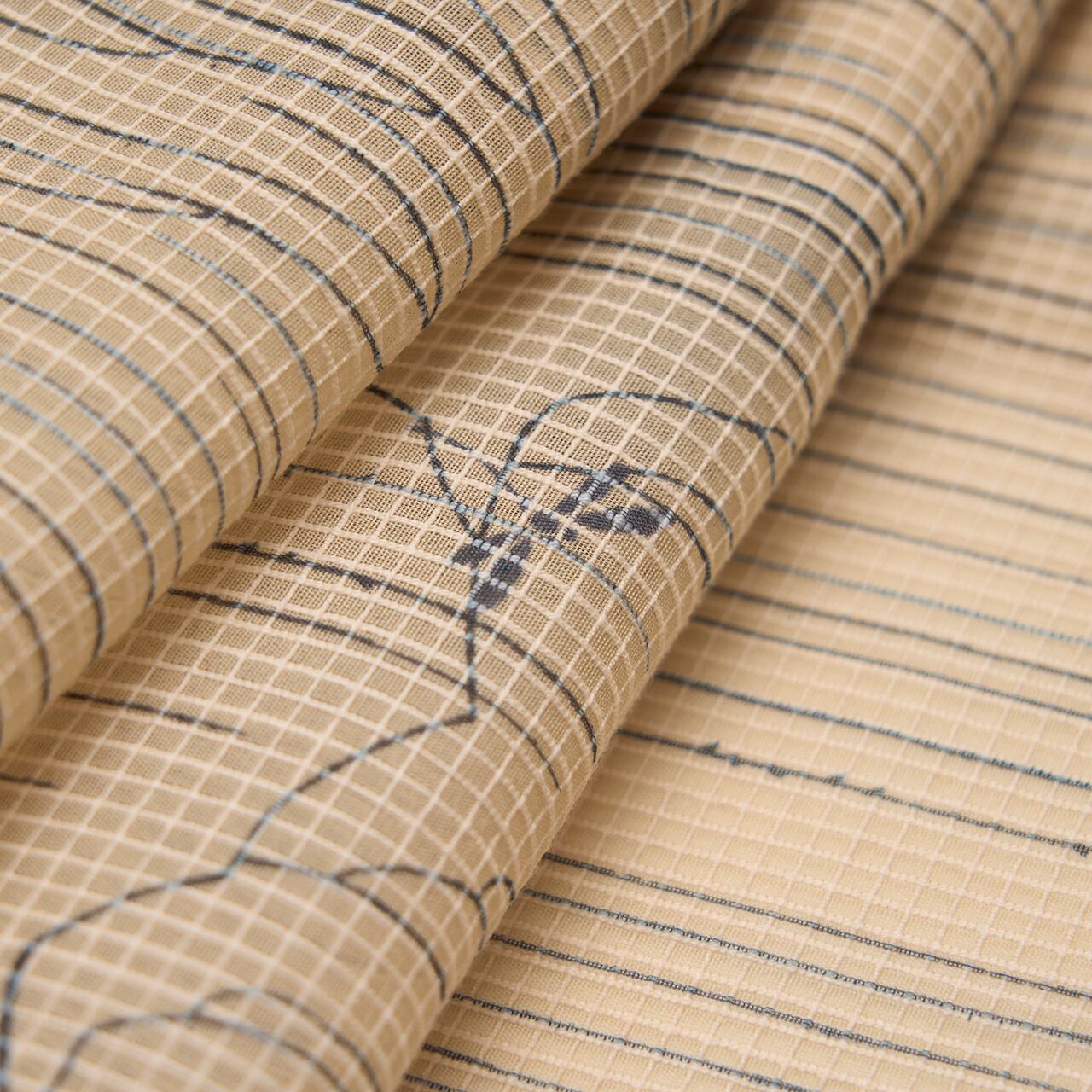 紅梅織とは、細い糸で織られた地に太い糸を織り込むことでみじん格子や縞の模様を表した、凹凸感のある独特の風合いの織物です。