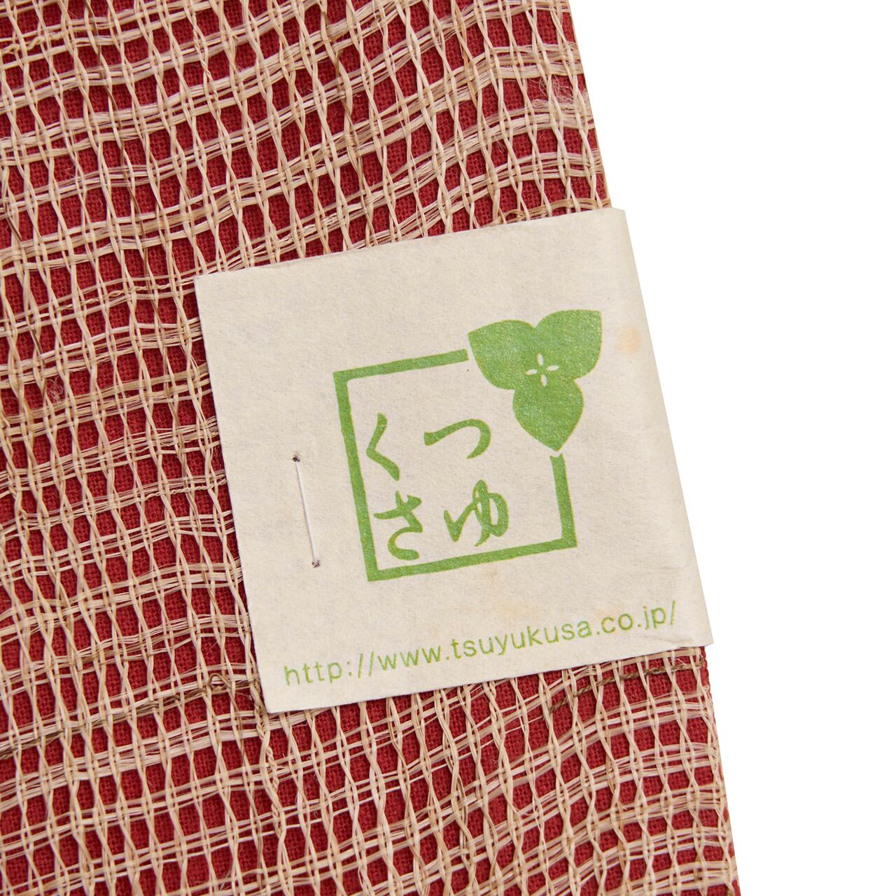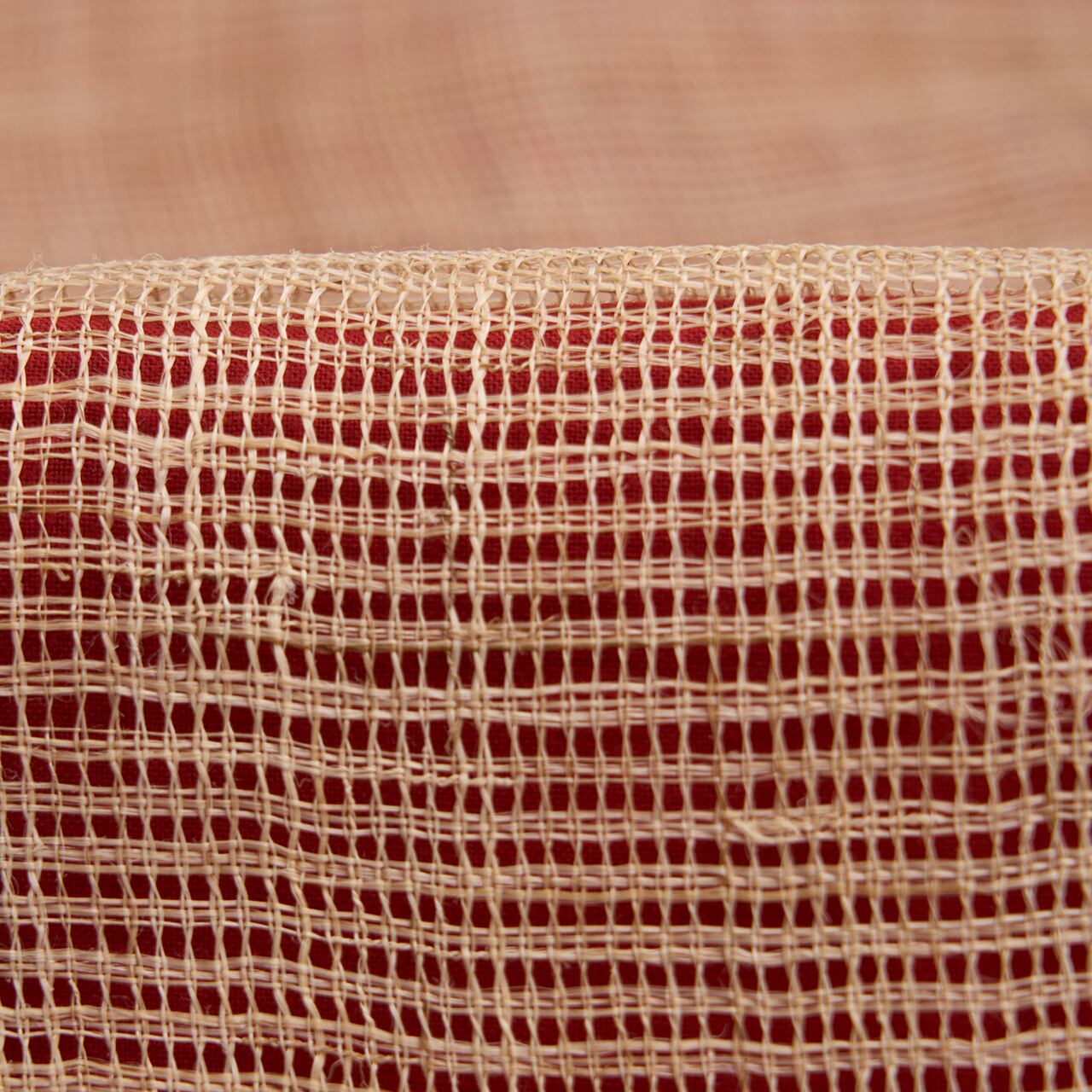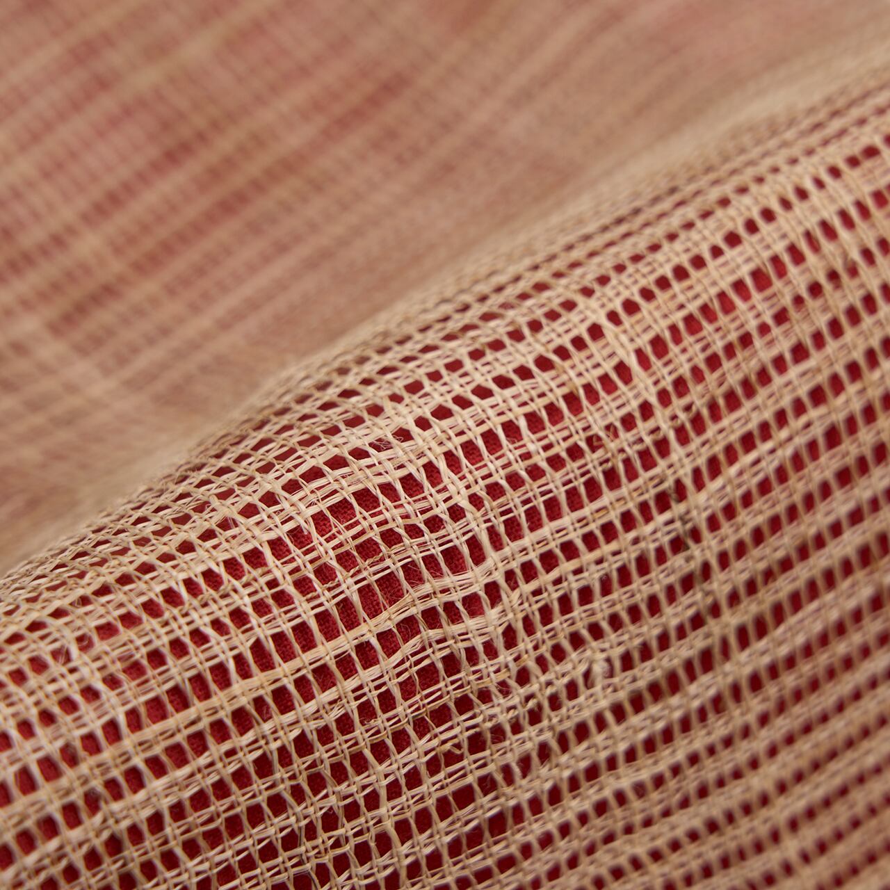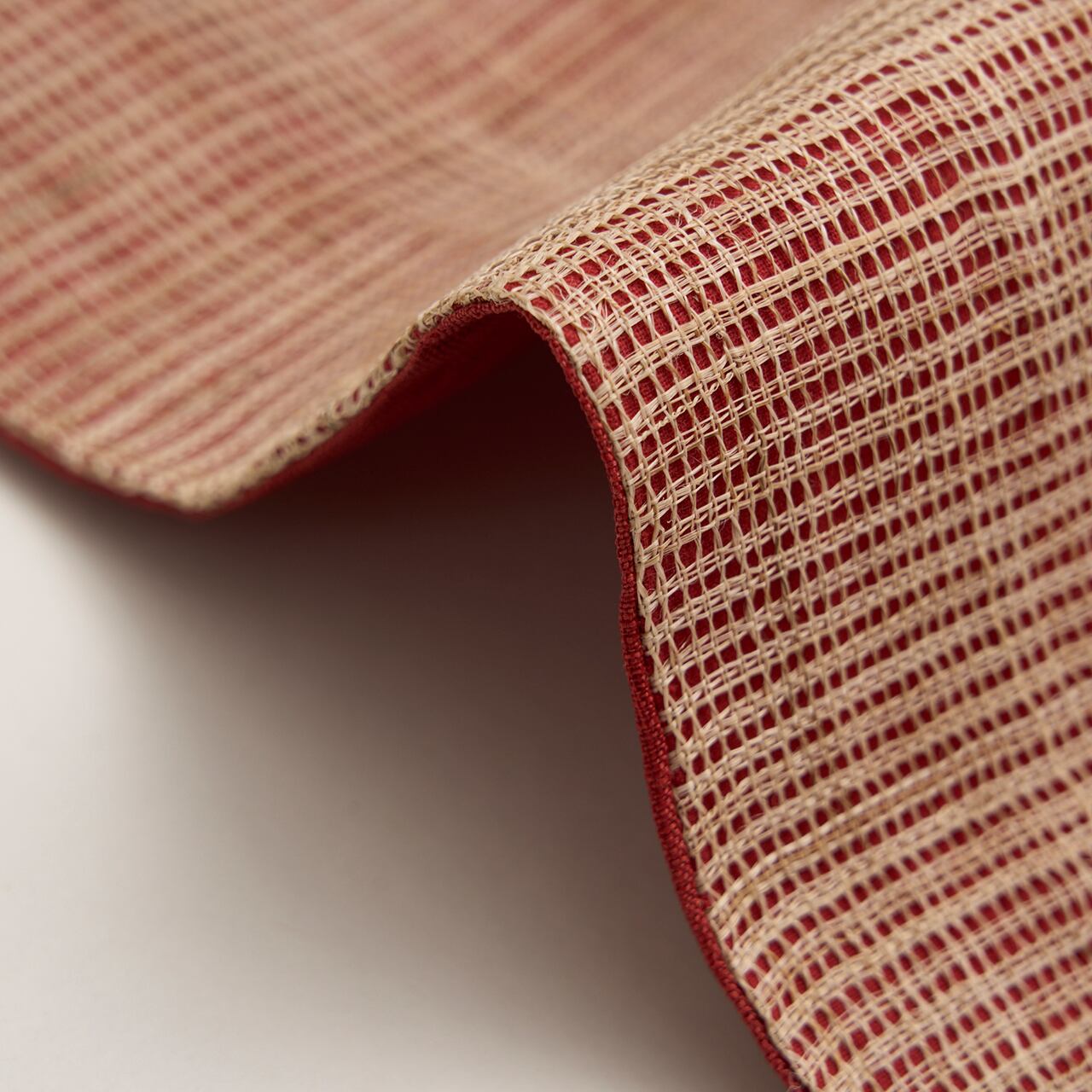 表の麻の糸で織られた面は、絽目のある透かし織になっていますので、裏面の蘇芳色が透けて見えてニュアンスのある色目となっています。