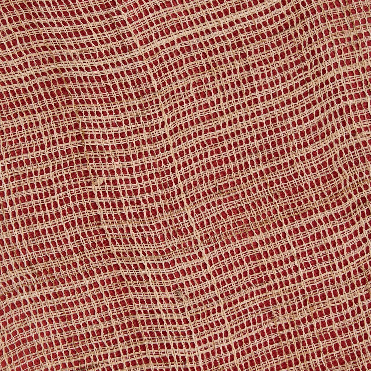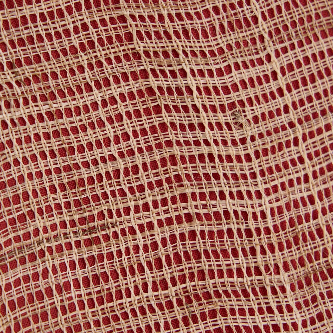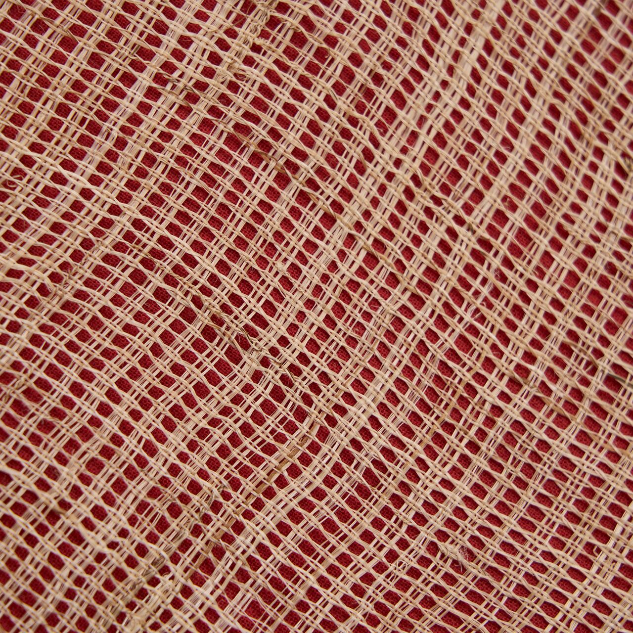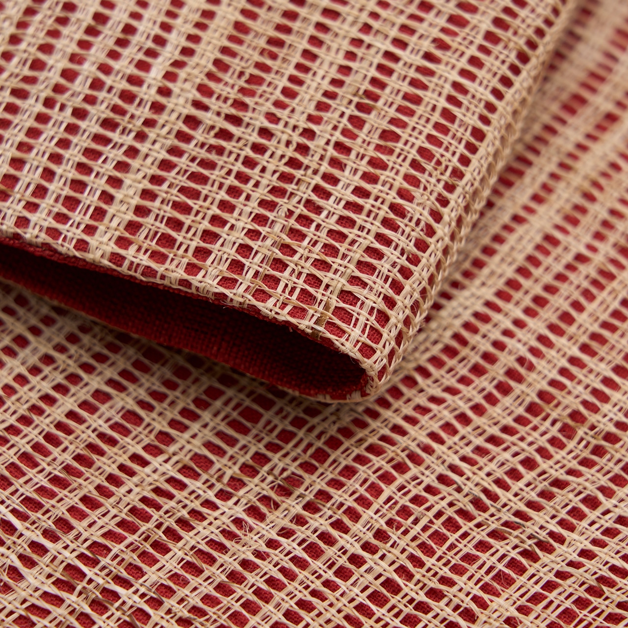 表の麻の糸で織られた面は、絽目のある透かし織になっていますので、裏面の蘇芳色が透けて見えてニュアンスのある色目となっています。