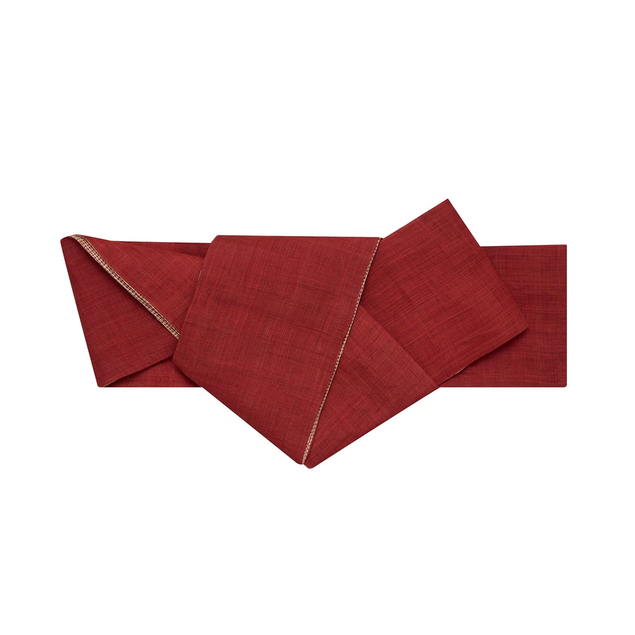 絽織・蘇芳無地 麻 両面半幅帯 つゆくさ【未着用品】