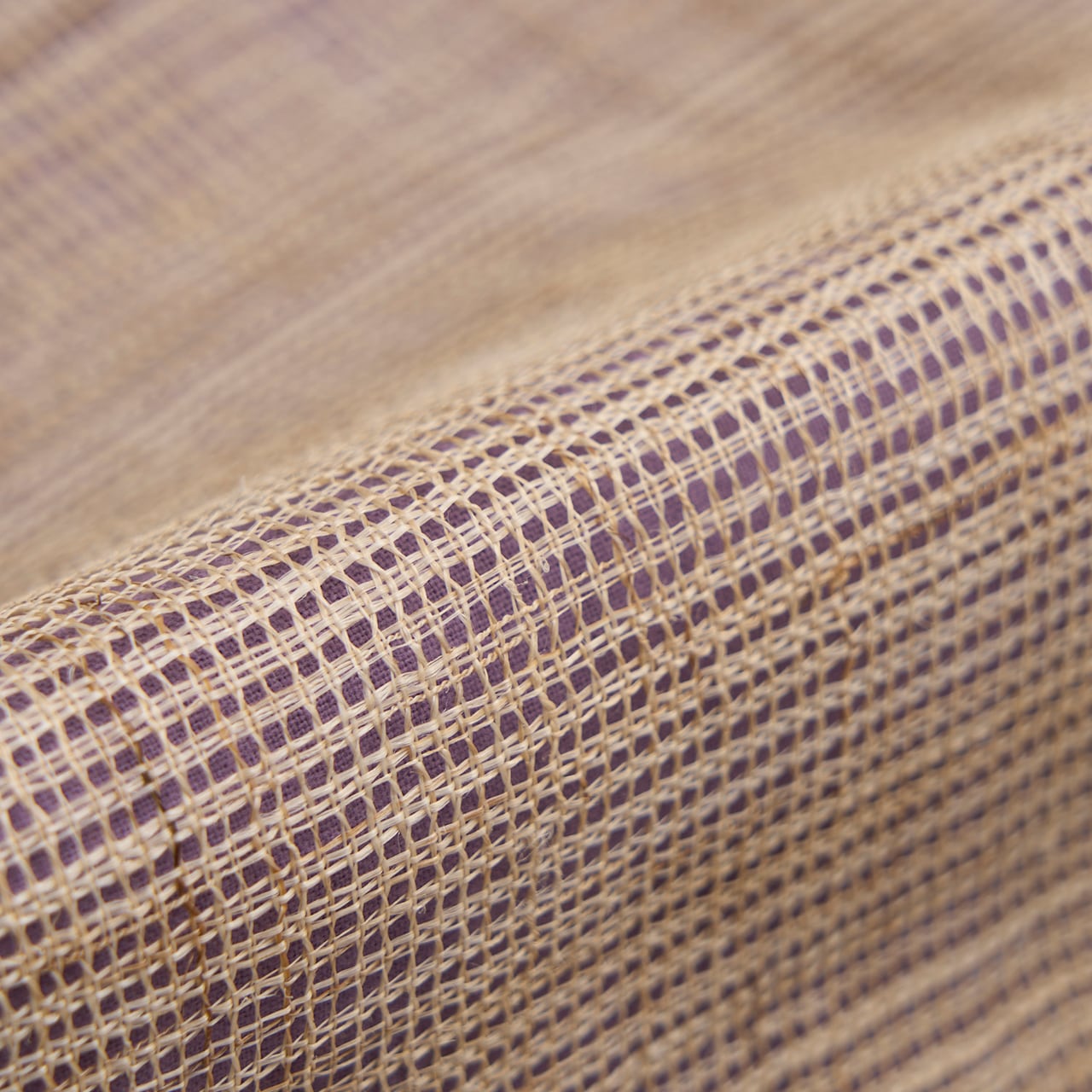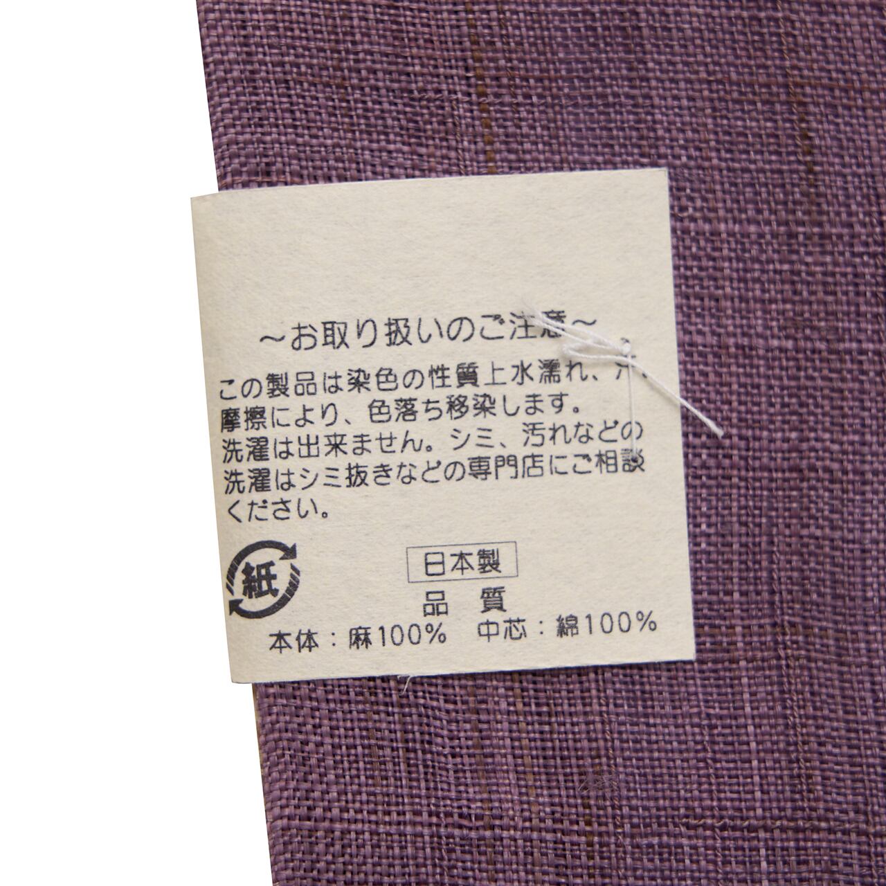 表の麻の糸で織られた面は、絽目のある透かし織になっていますので、裏面の茄子紺色が透けて見えてニュアンスのある色目となっています。