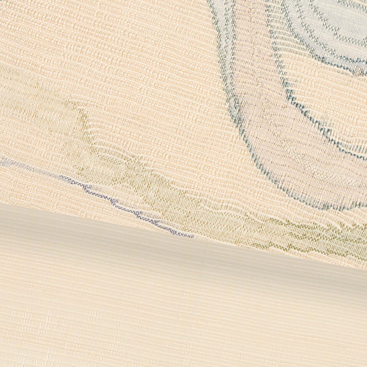 躍動感のある流線が、淡いパステルトーンで織り出され、上質な糸の光沢でとても綺麗に輝いていて、お洒落な雰囲気を醸し出している素敵な帯です。