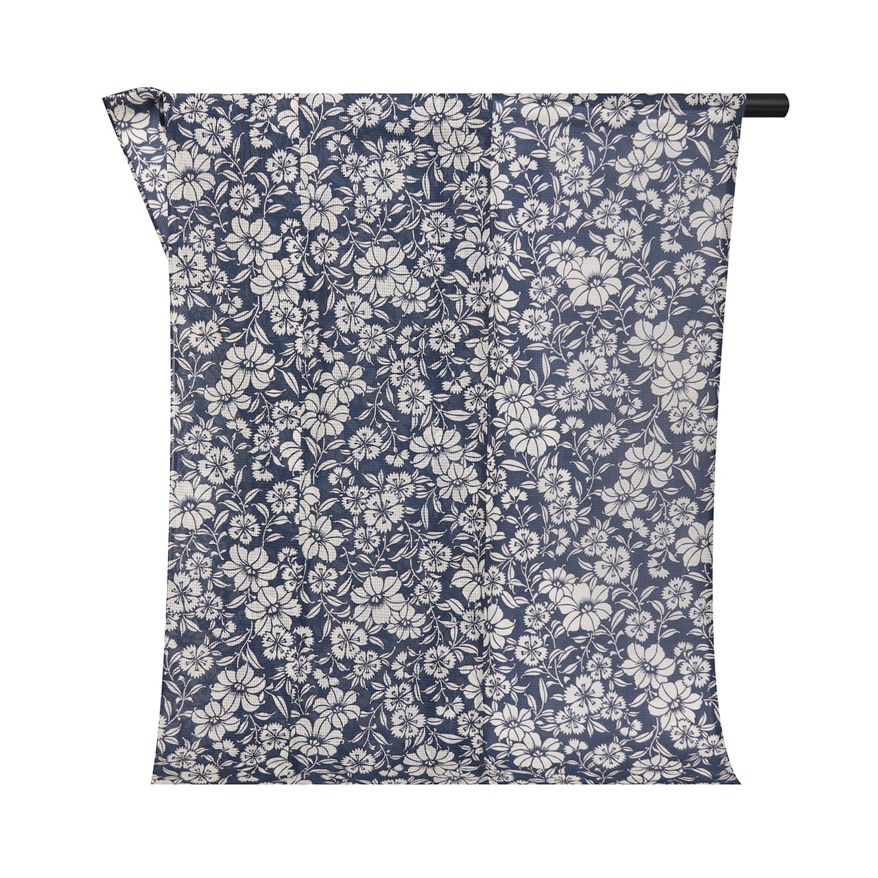 純粋な浴衣よりは、少し夏のお着物寄りの雰囲気となっていて、藍と白のコントラストもとても爽やかな印象で、軽快にお召しいただけるのではないかと思います。
