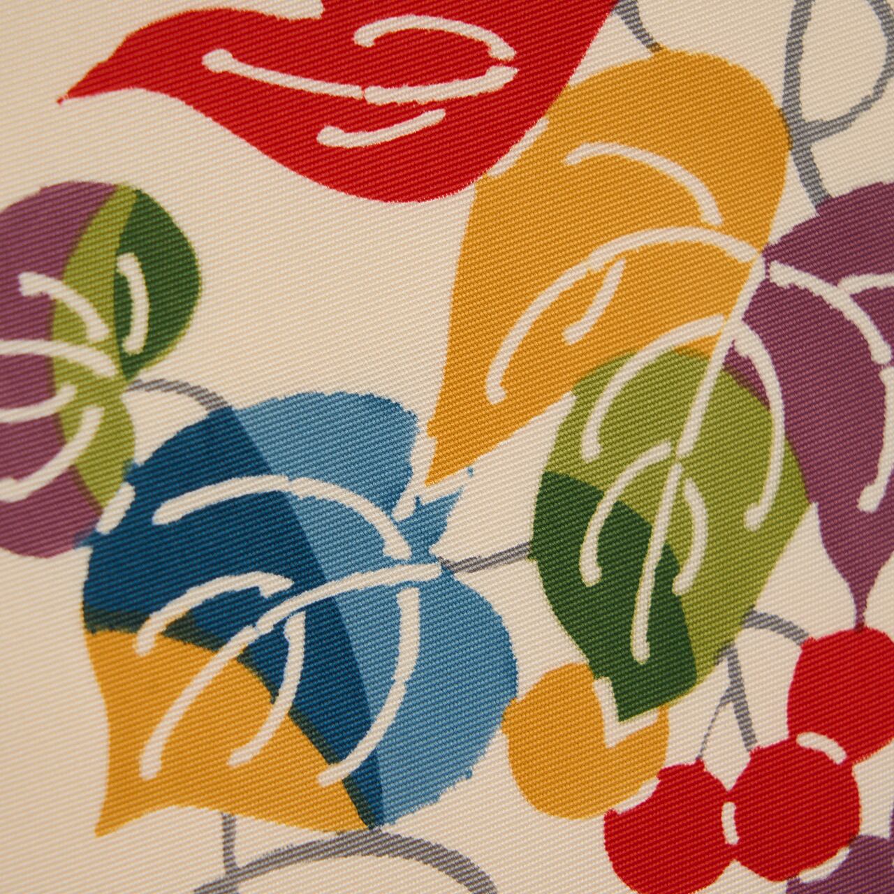 小鳥のさえずりが聞こえてきそうなチャーミングな図案ですが、赤が多く使われていて、緑色や藍色などもバランスよく配置され、少しポップな楽しさの感じられる素敵な帯となっています。