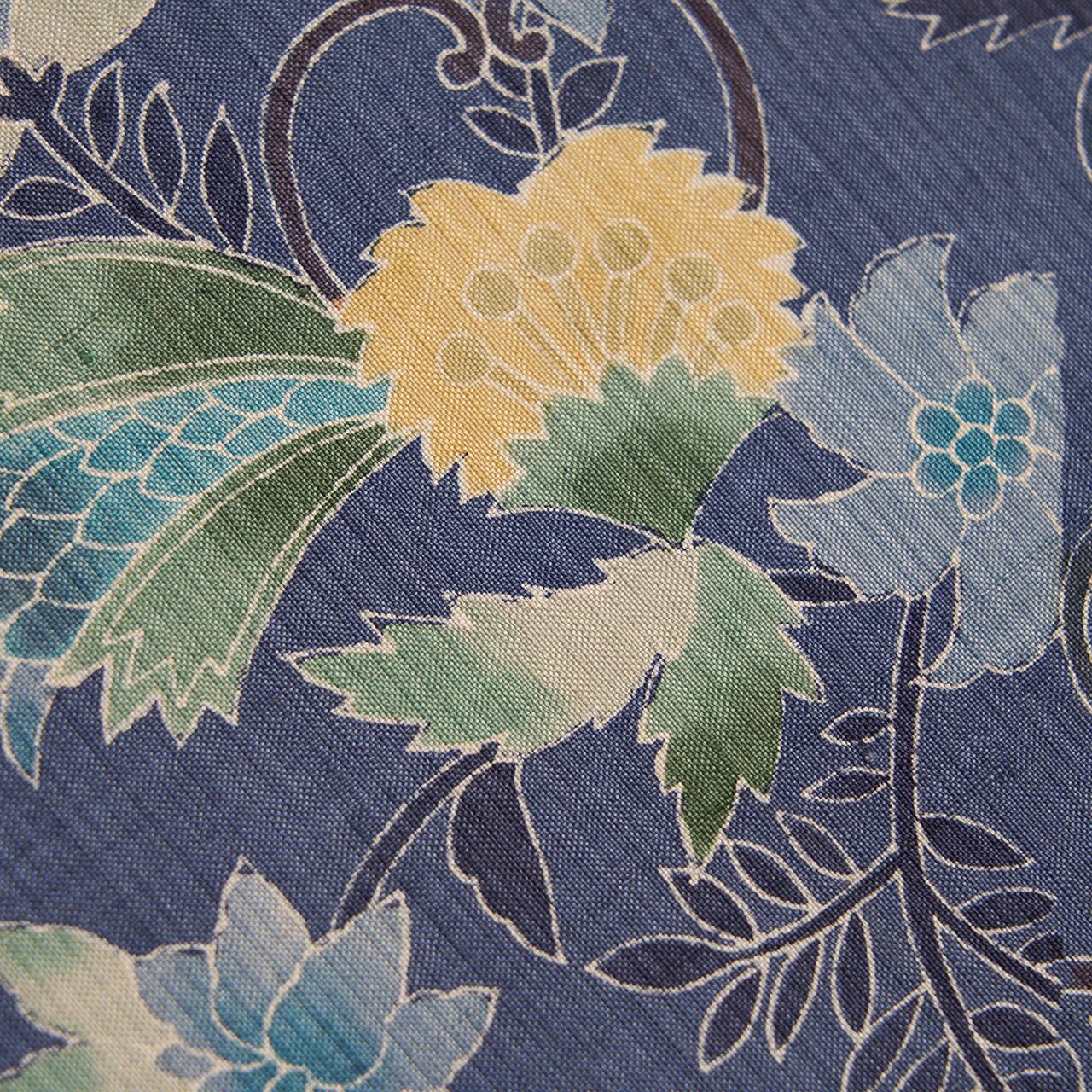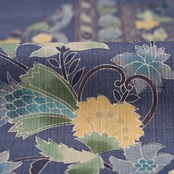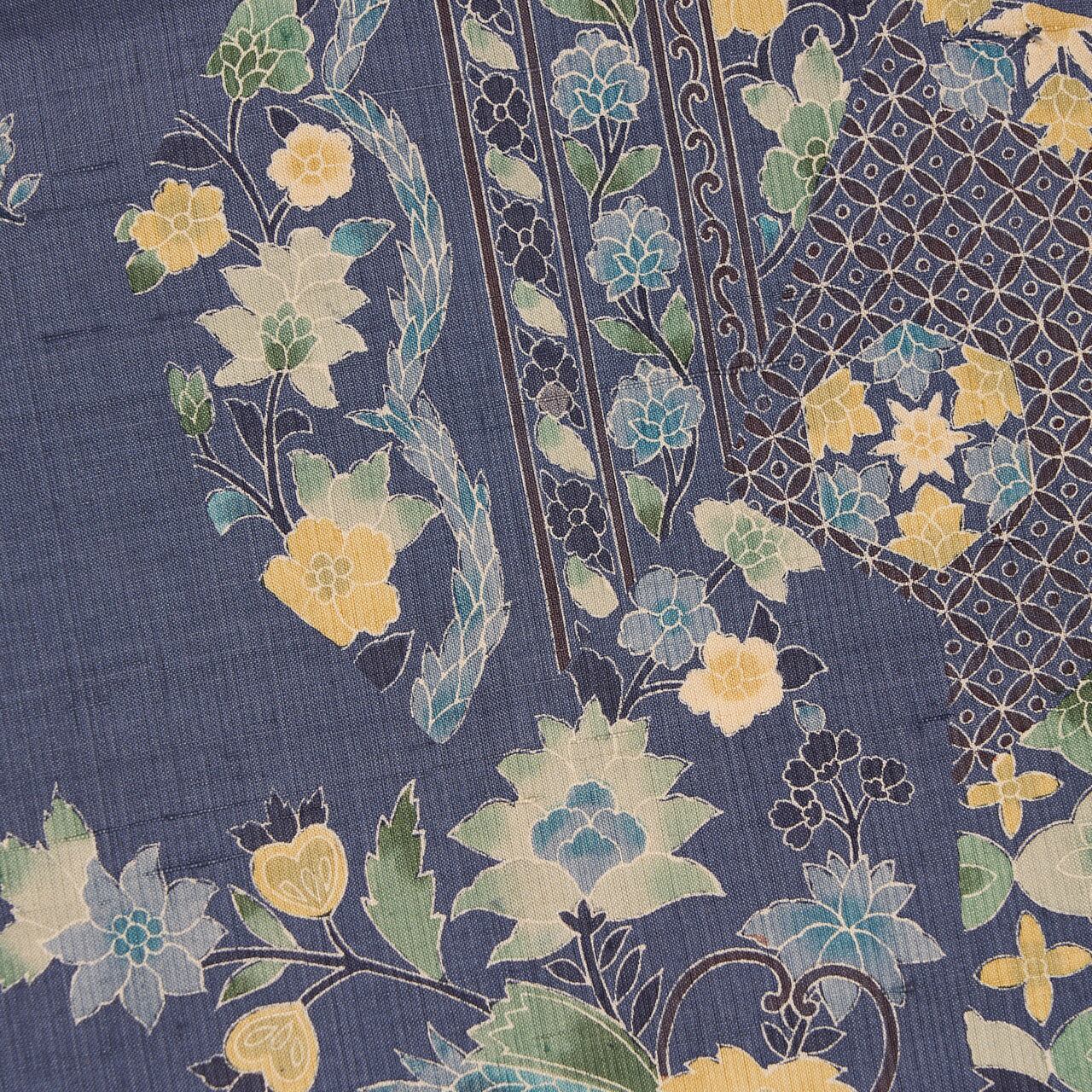 こちらも小林文次郎さんらしい藍系を主体とした独特のシックなお色使いで、洗練されたお洒落な雰囲気が感じられますが、更紗のそれぞれの模様も多彩に変化のあるものとなっていて、手挿しと思われる暈しなども加えられ、隅々まで心がこもった丁寧さや愛着が感じられ、眺めているだけでも飽きることのない魅力に溢れています。