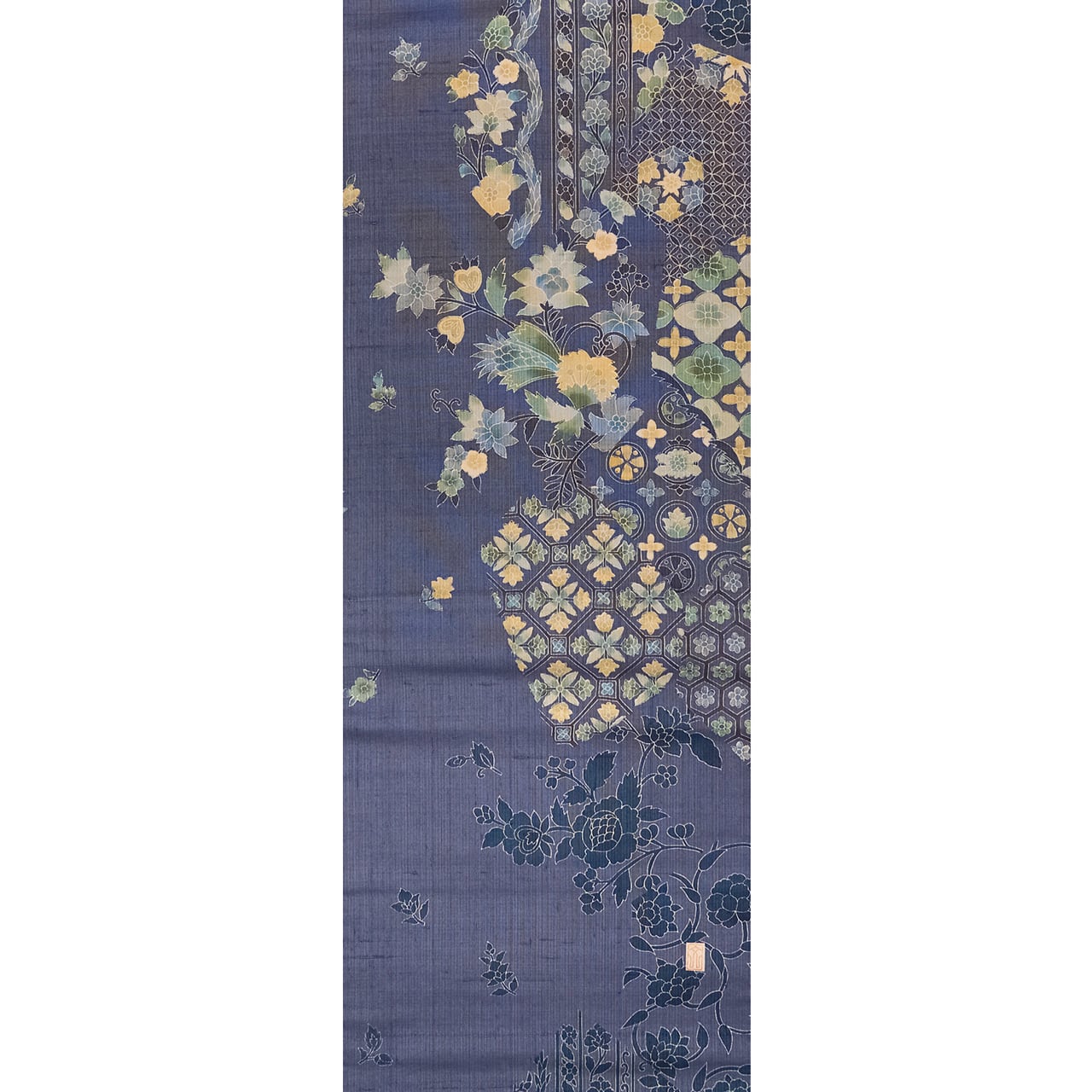 江戸小紋、江戸更紗、紅型、手描友禅、ロウケツ染め、絞り染め、藍染めなど、伝統に培われた染めの技術を駆使しながら、様々な芸術的要素を取り入れ、オリジナリティのある素晴らしい数々の作品を世に発表され続けた、大正時代から続く歴史のある染屋さん「二葉苑」の三代目・小林文次郎さんの作品です。