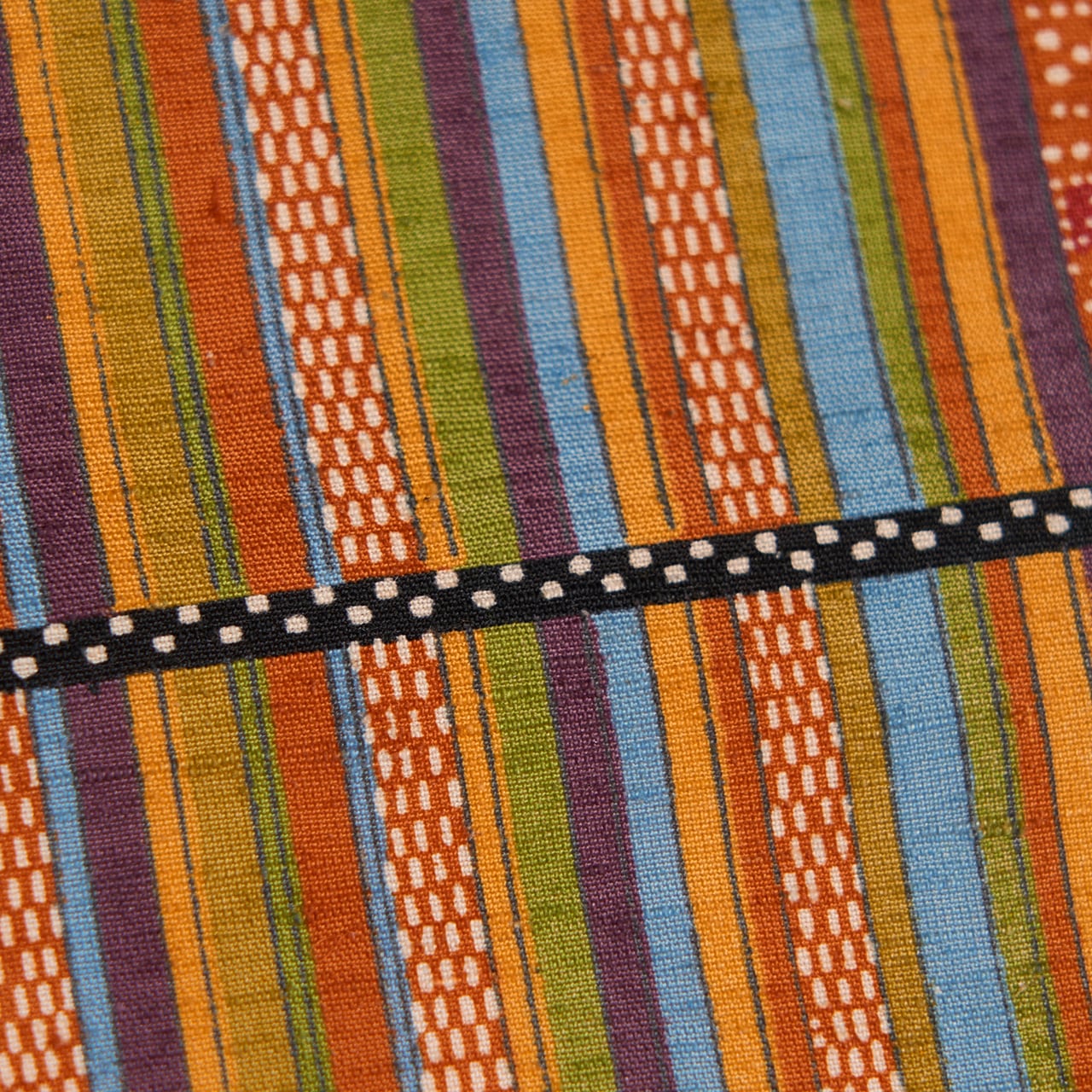 横段に縞と、それに水玉のような模様が染められていますが、それがアクセントとなって模様全体が引き締まっているようです。