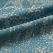 それを5年の歳月をかけて、松原家の四兄弟で絹に染める研究をされ、試行錯誤の末に成功されましたが、こちらのような素晴らしい作品を拝見しても、そのご苦労の甲斐があってこれほどの複雑な模様を染められることが叶い、その喜びが伝わってくるような、作家の自己チャレンジのような迫力さえ感じられるようです。