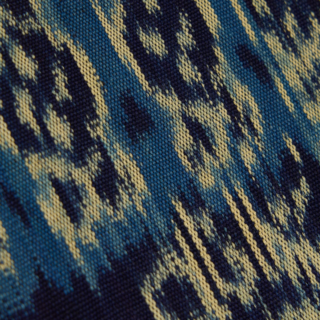 藍の濃淡が巧みに使い分けられて複雑な模様を構成していますが、絣には特別設計図のようなものはなく、フリーハンドに近い形で括って染められるそうで、それも驚きです。