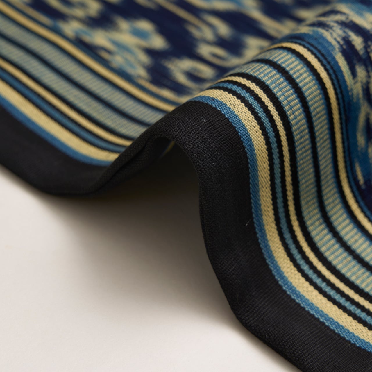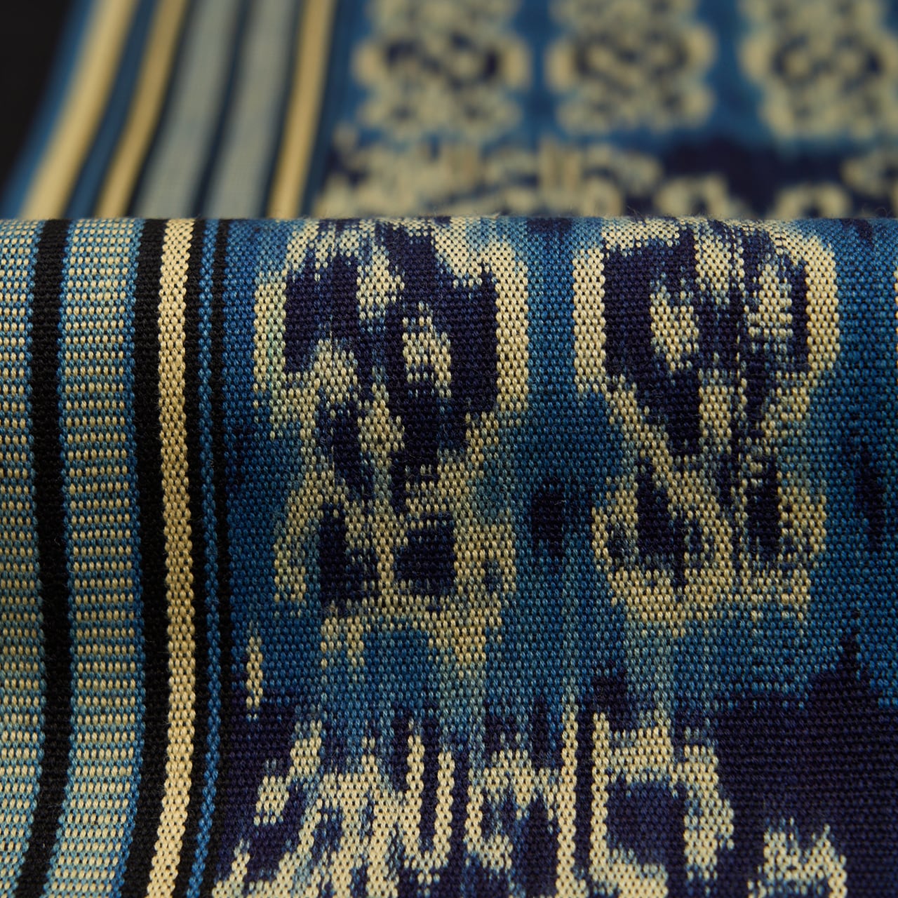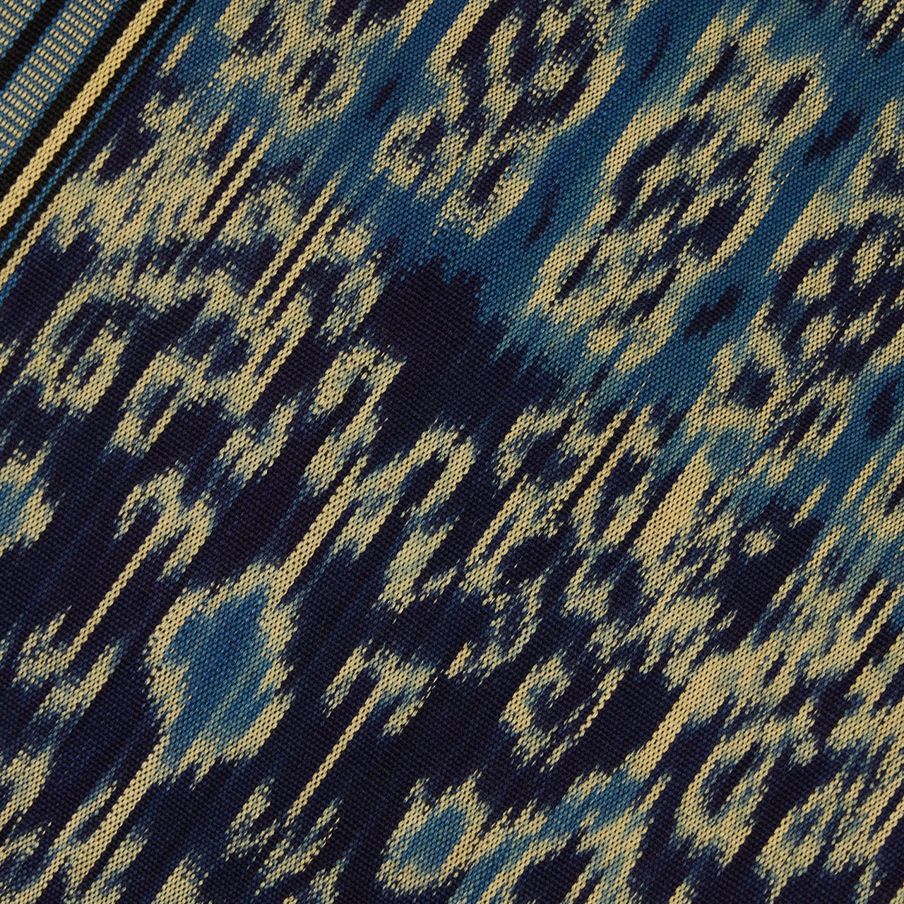インドネシアのイカットには、縦絣と横絣のシングルイカットと、縦横に絣のあるダブルイカットがありますが、こちらは縦絣のシングルイカットで、日本に古くから伝わる太子間道を連想するような模様となっています。