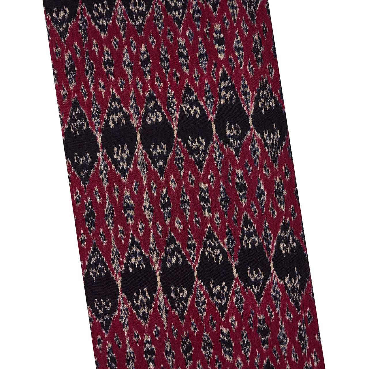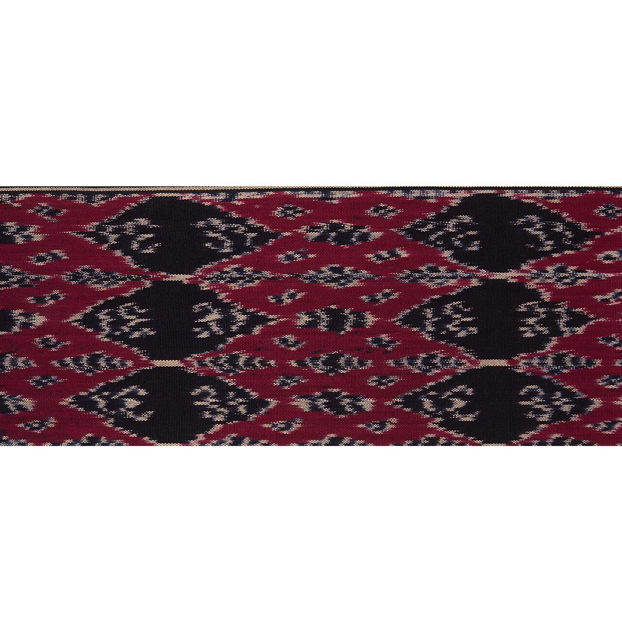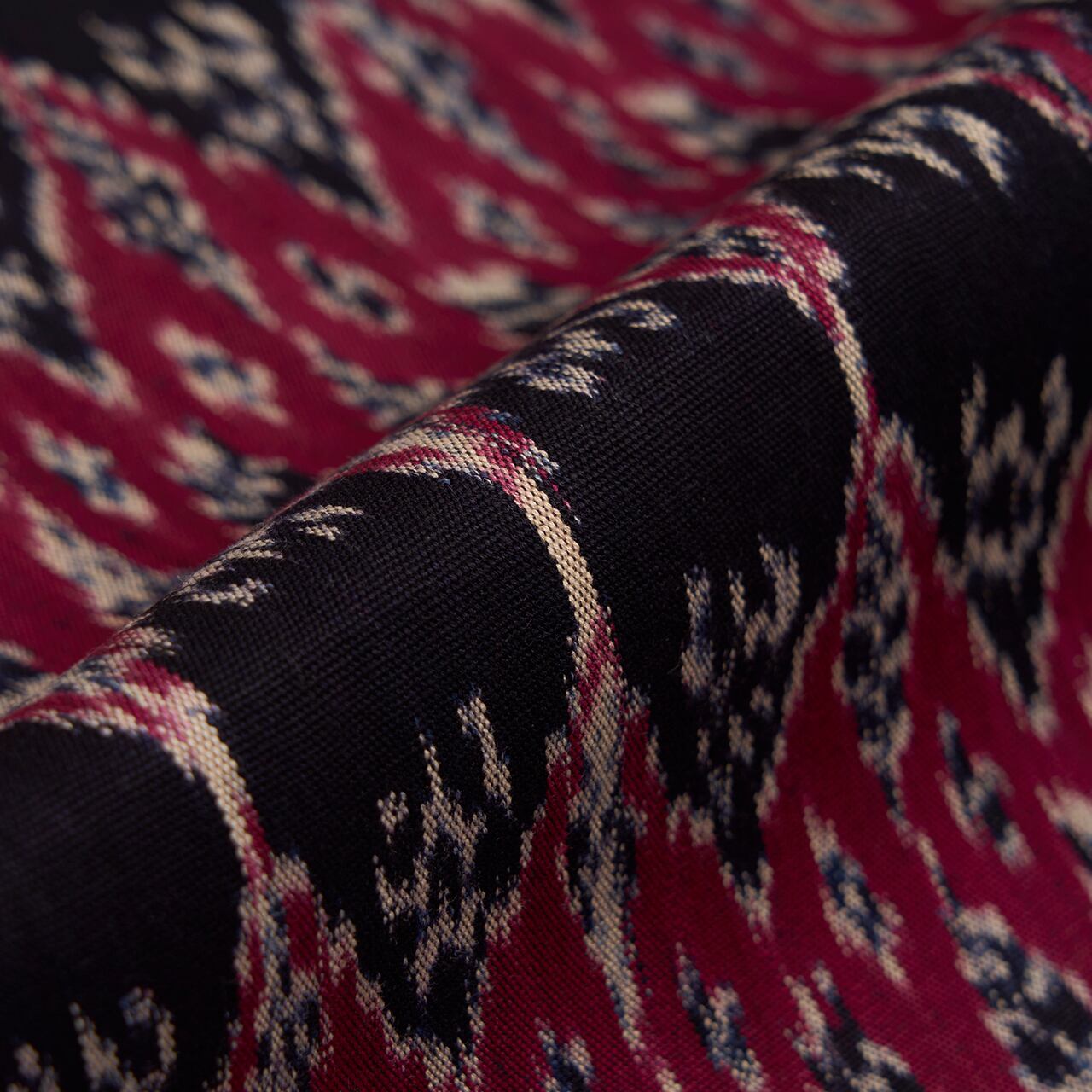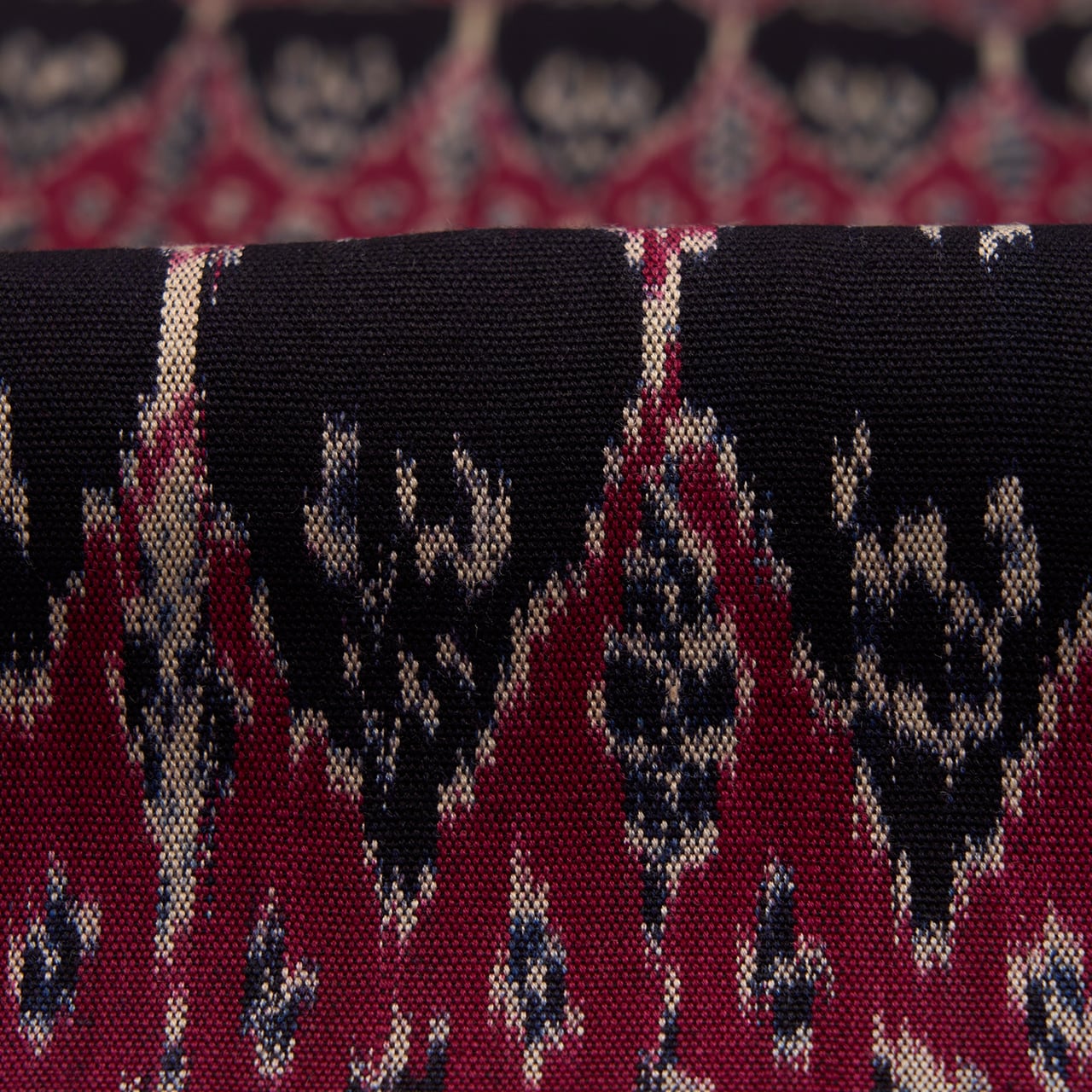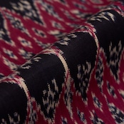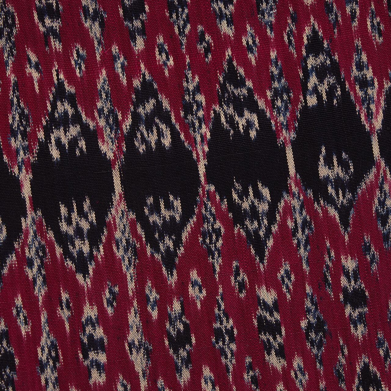 黒とワイン色とのコントラストがとても美しく、イカットらしい模様もシャープな印象となっていて、目を引く華やかさがあります。