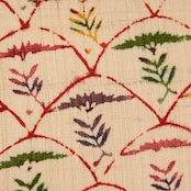 この菊のデザインは下平さんの作品にも見られるもので、ラフでありながらもきっちりと色分けされた模様の染め方や、赤を効果的に使われているところなどからもそれが伺えます。