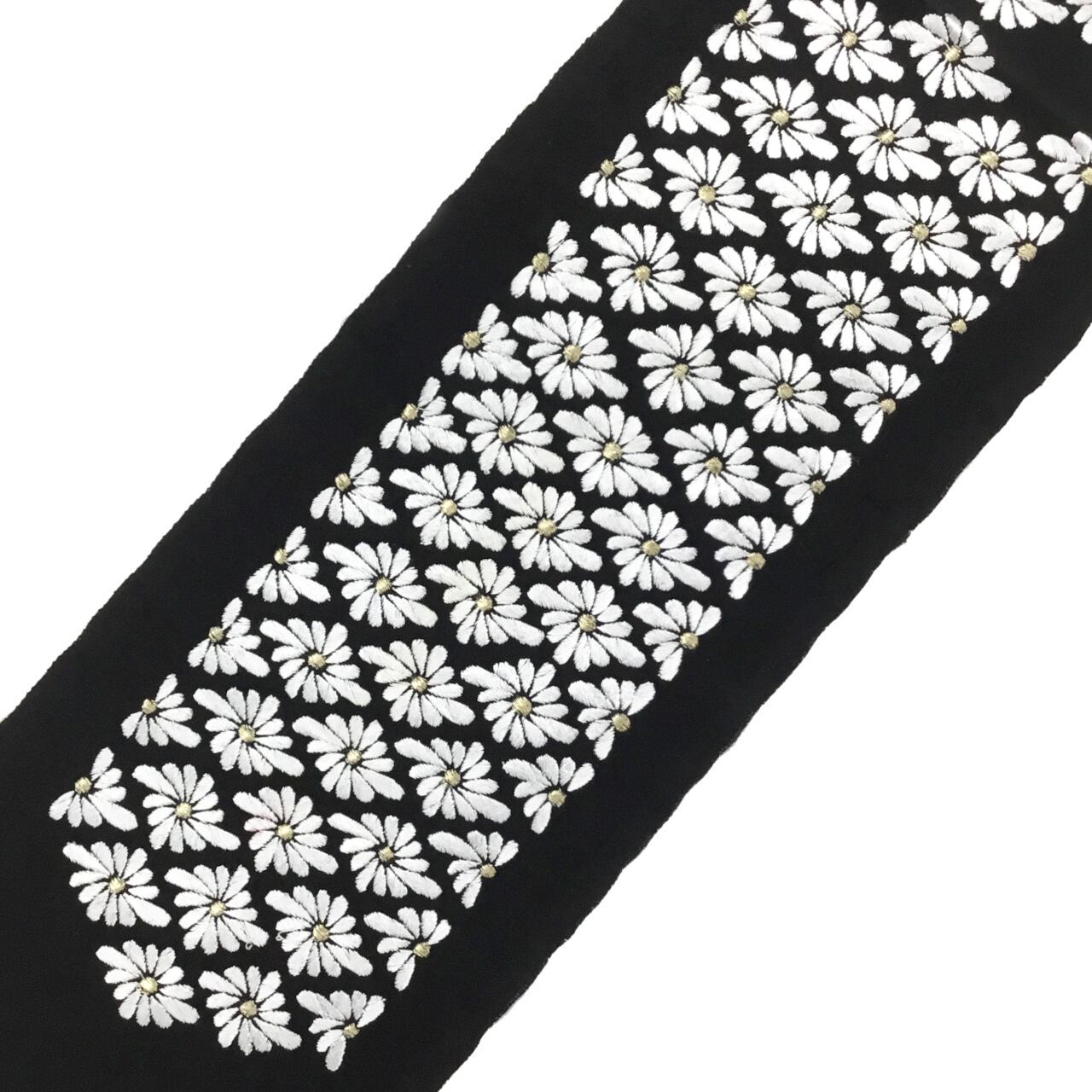 黒色の地に乳白色と金糸で菊尽くしの刺繍がされた半衿になります。