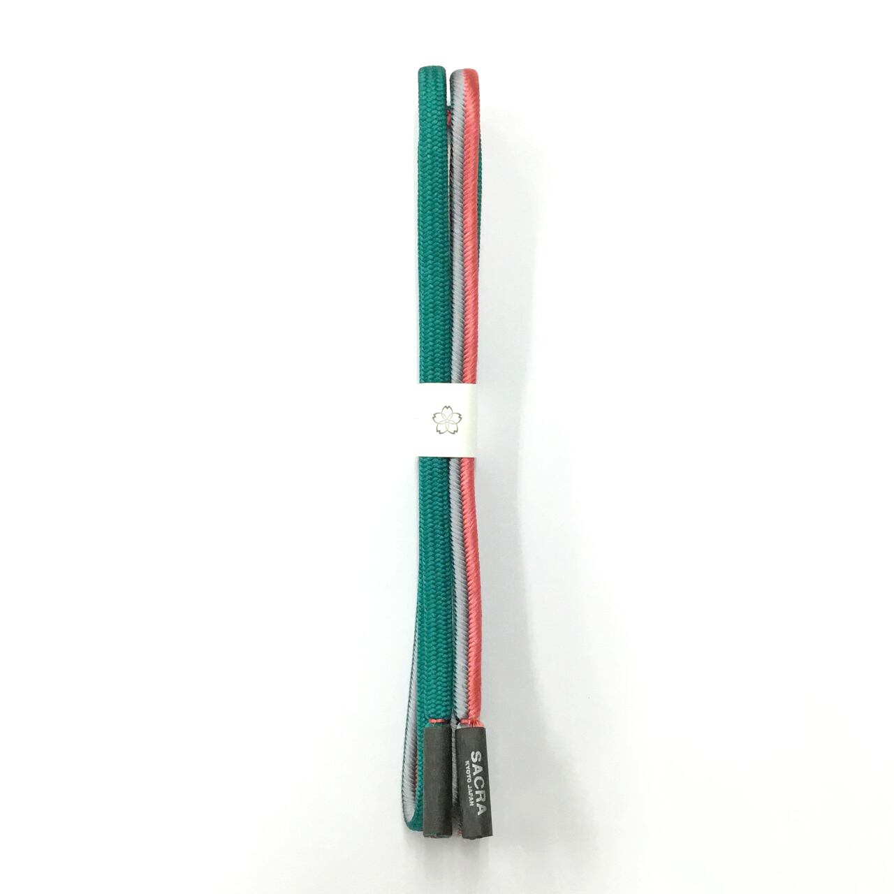 和小物さくら 帯締め 丸唐大和 濃い青緑色に薄鈍色と真朱色 絹100%【新品】