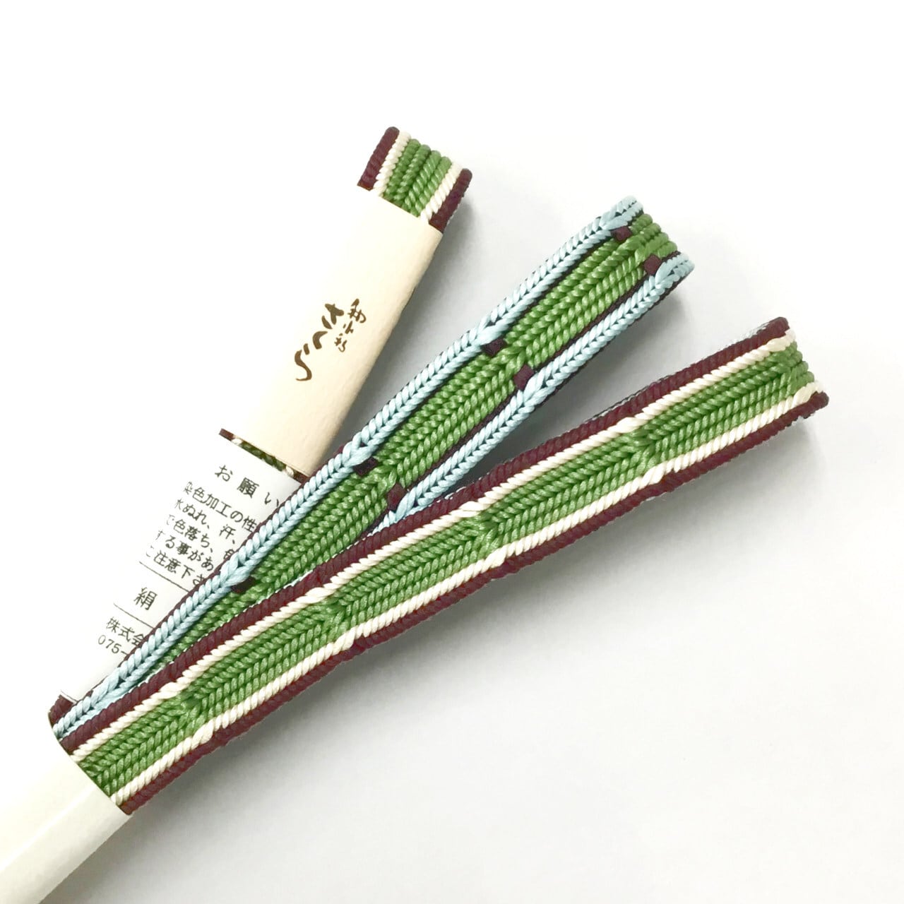 和小物さくら 帯締め 綾竹竹節組 両面 浅緑色に胡粉色と葡萄色と空色 絹100%【新品】
