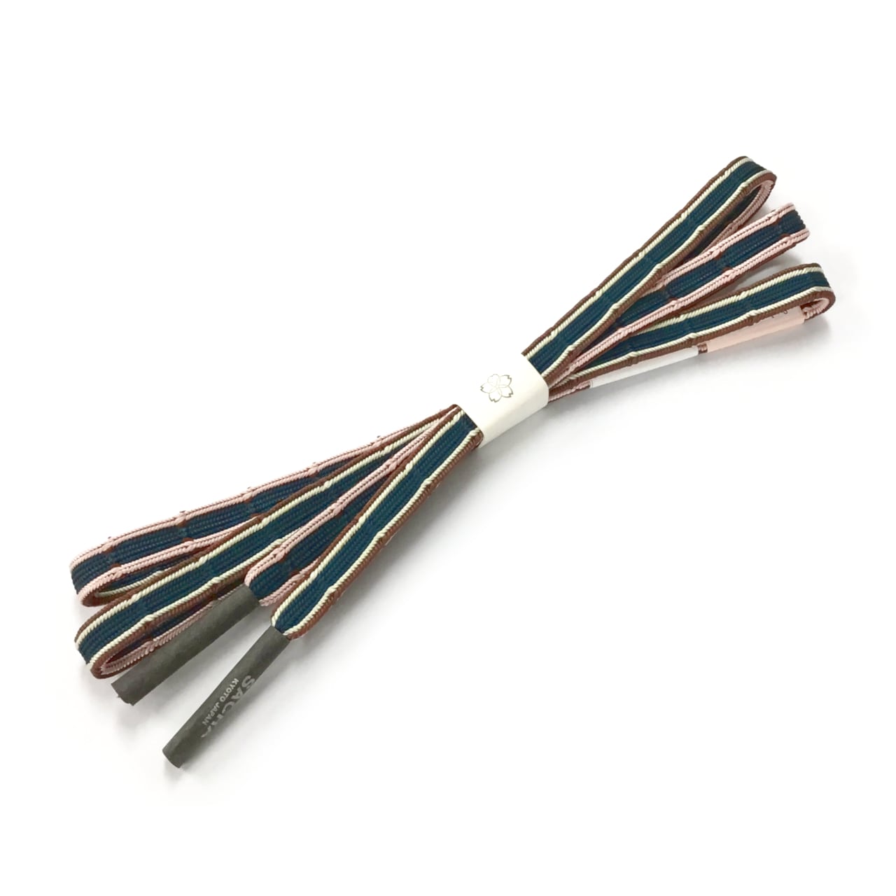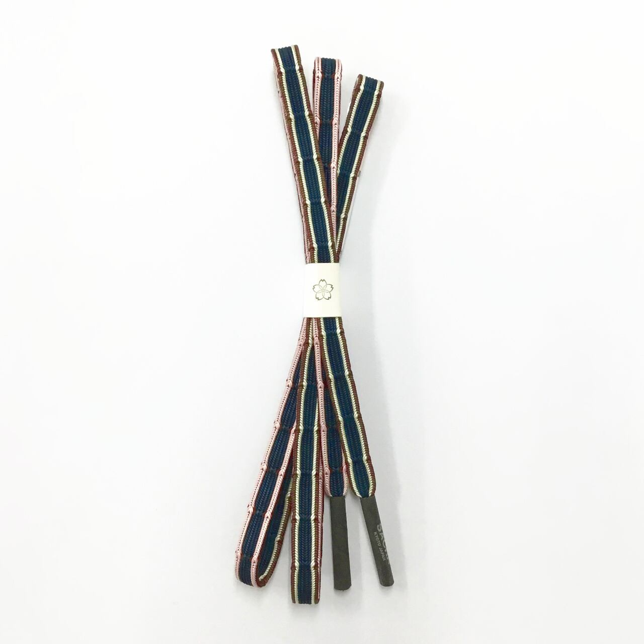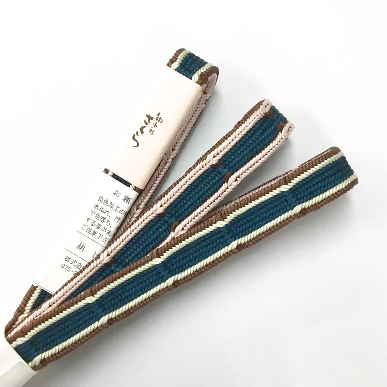 和小物さくら 帯締め 綾竹竹節組 両面 濃藍色に夏虫色と憲法色と薄い虹色 絹100%【新品】
