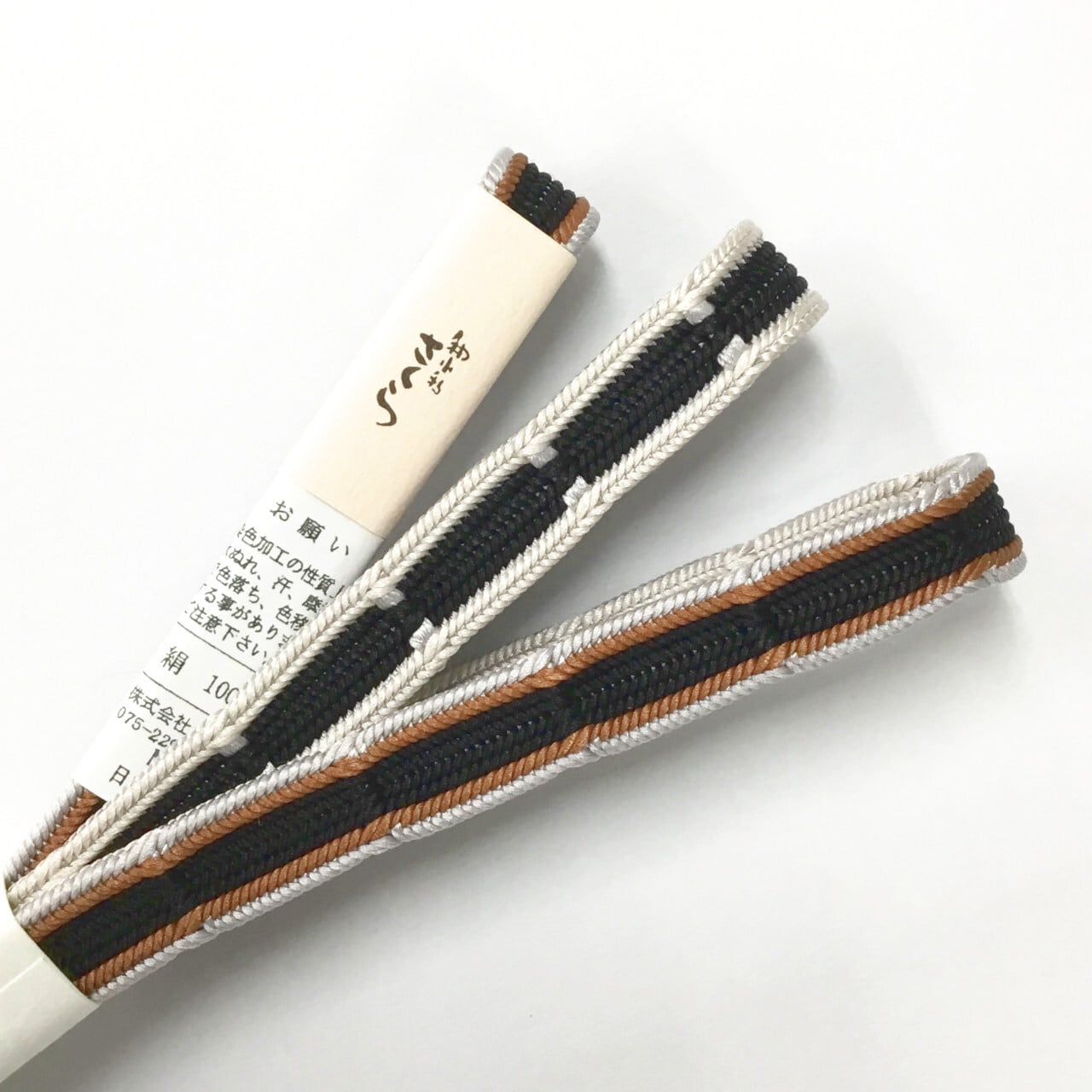 和小物さくら 帯締め 綾竹竹節組 両面 黒色に赤朽葉色と紫水晶色と象牙色 絹100%【新品】