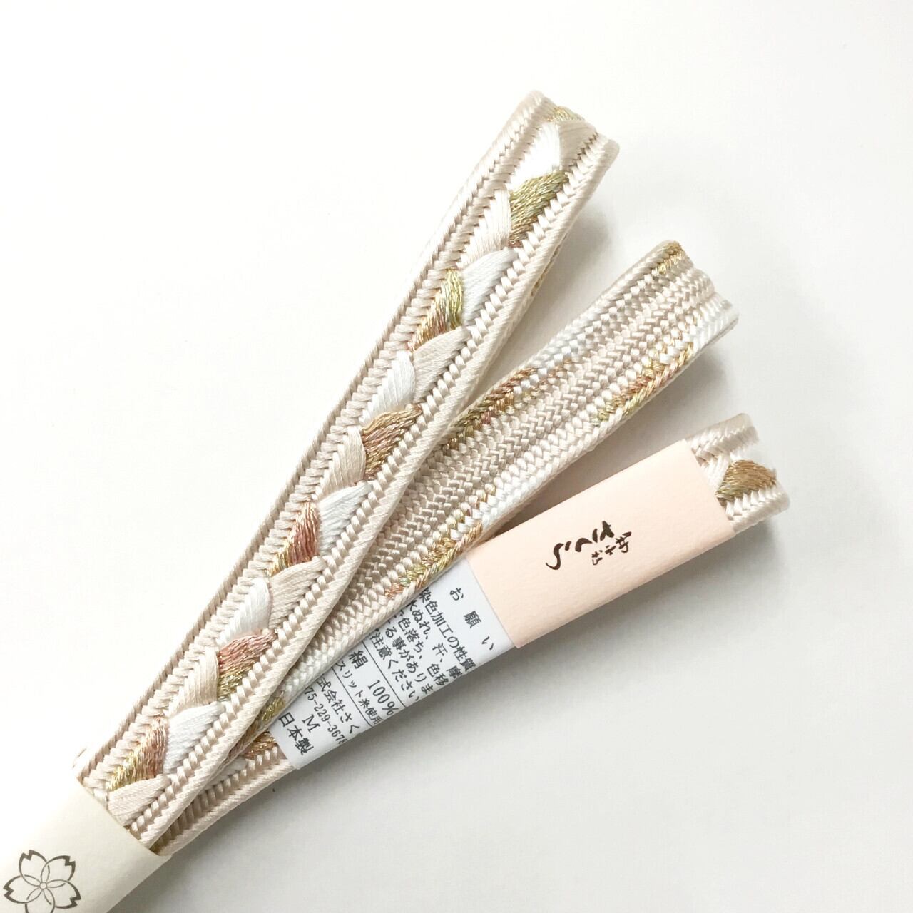 和小物さくら 帯締め 高麗浮目静海 薄い灰梅色 絹100% 金属糸使用【新品】