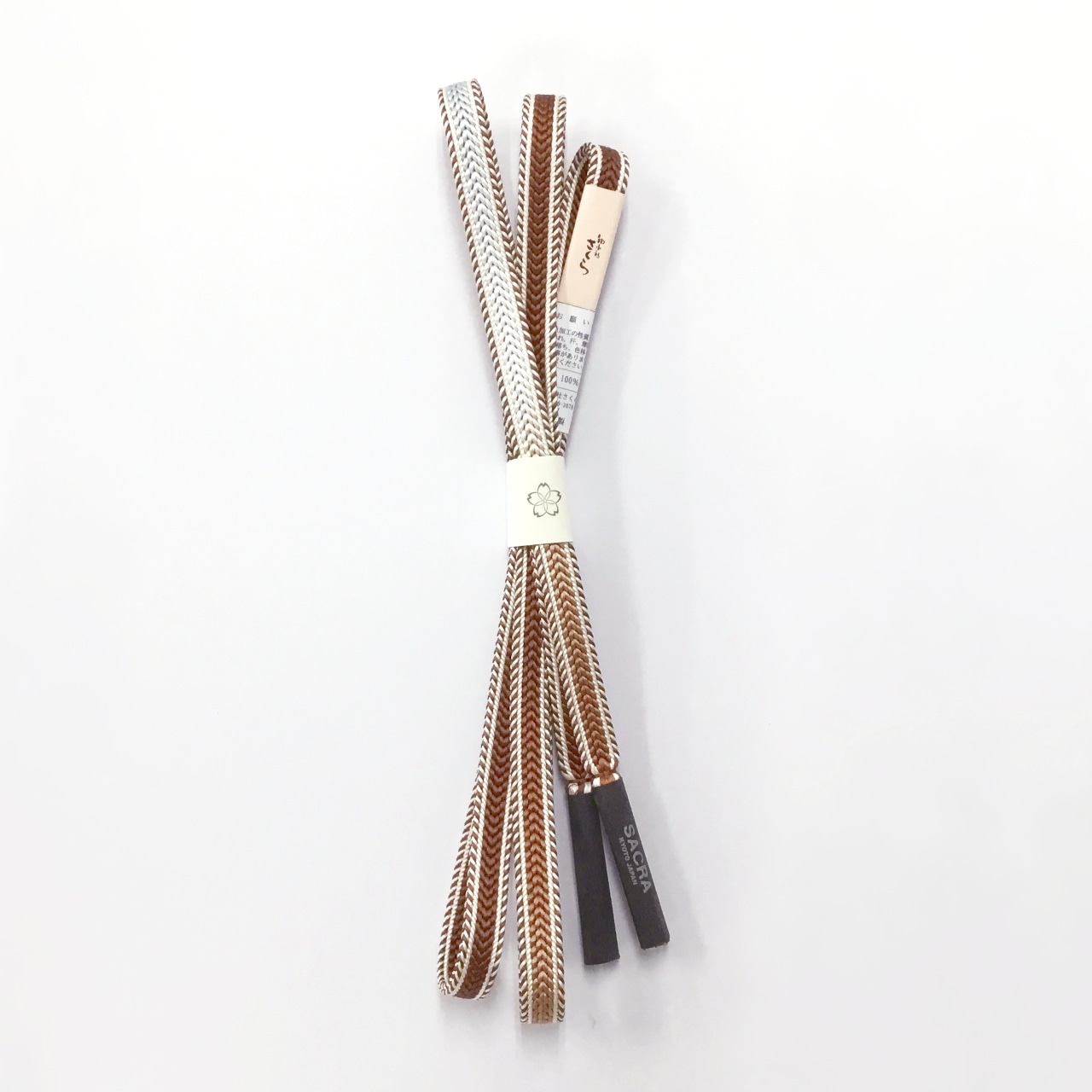 和小物さくら 帯締め 綾竹耳縞暈し 渋紙色から空色 絹100%【新品】