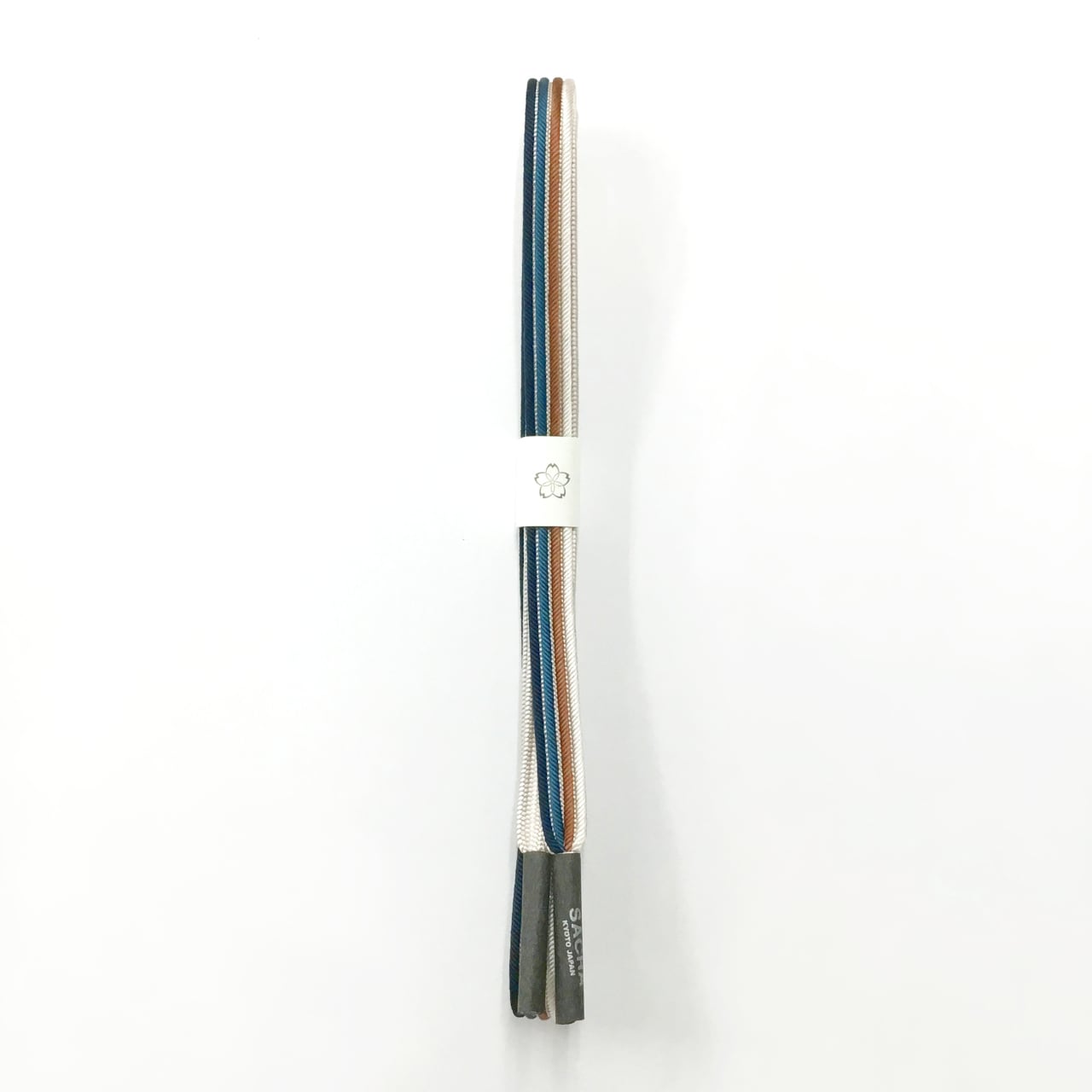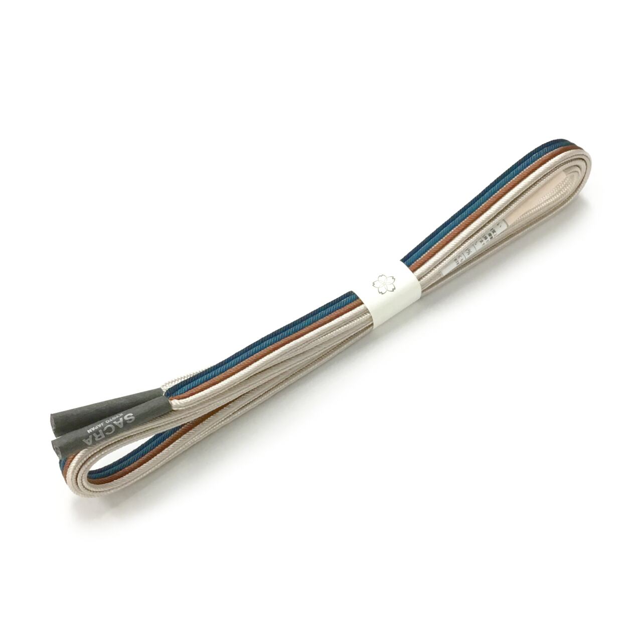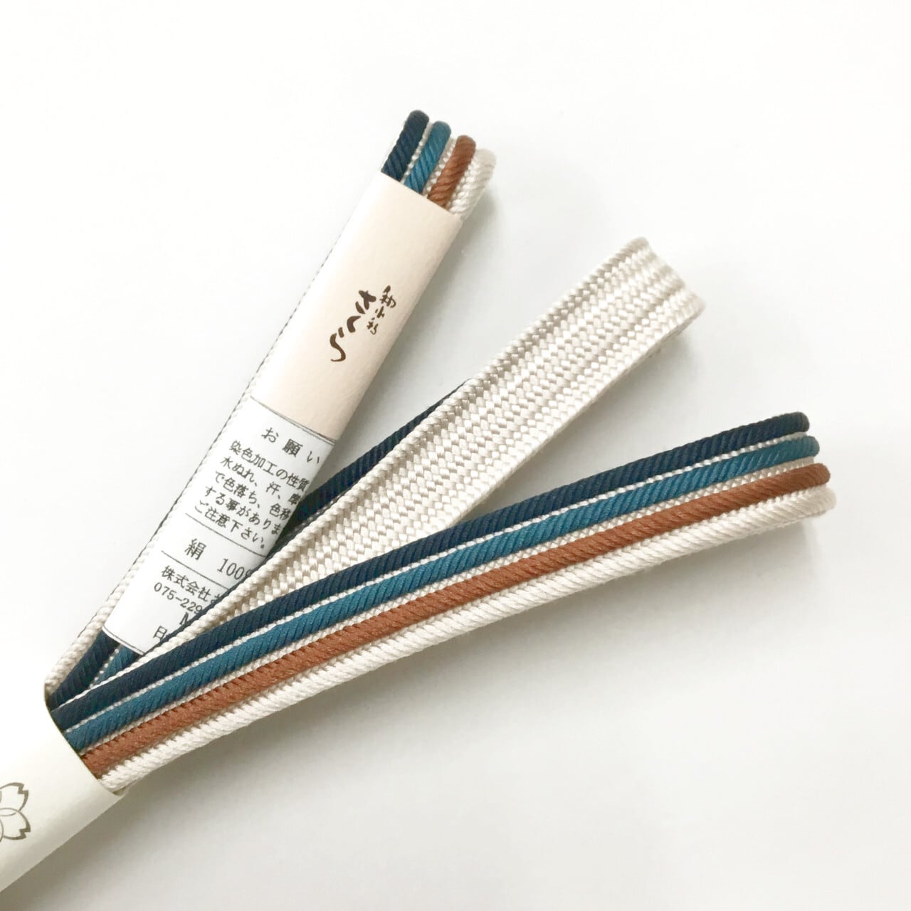 和小物さくら 帯締め 畝打四本線 生成り色に櫨色と濃い納戸色と褐返色 絹100%【新品】