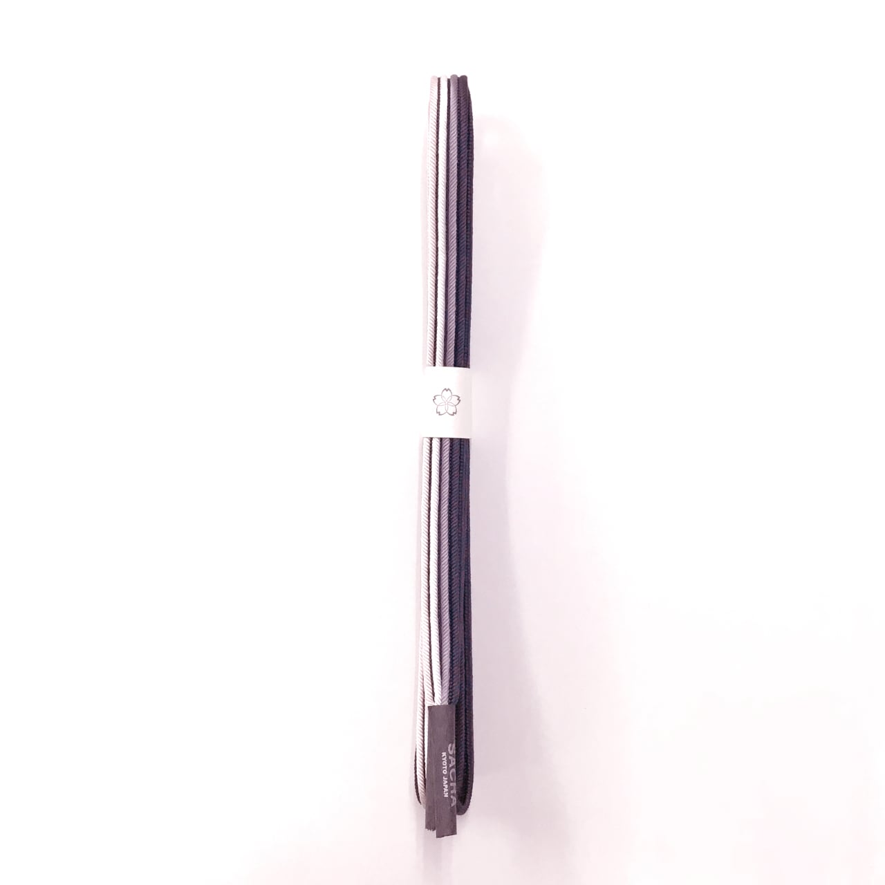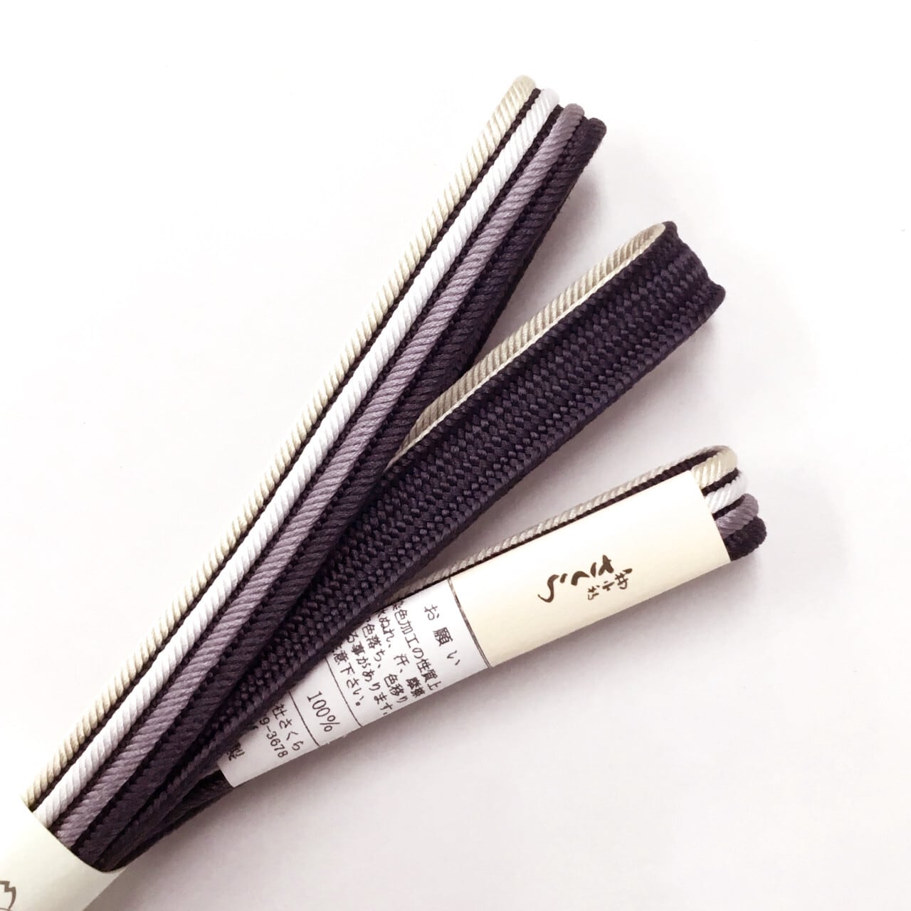和小物さくら 帯締め 畝打四本線 藍鉄色に紅藤色と白色と薄卵色 絹100%【新品】