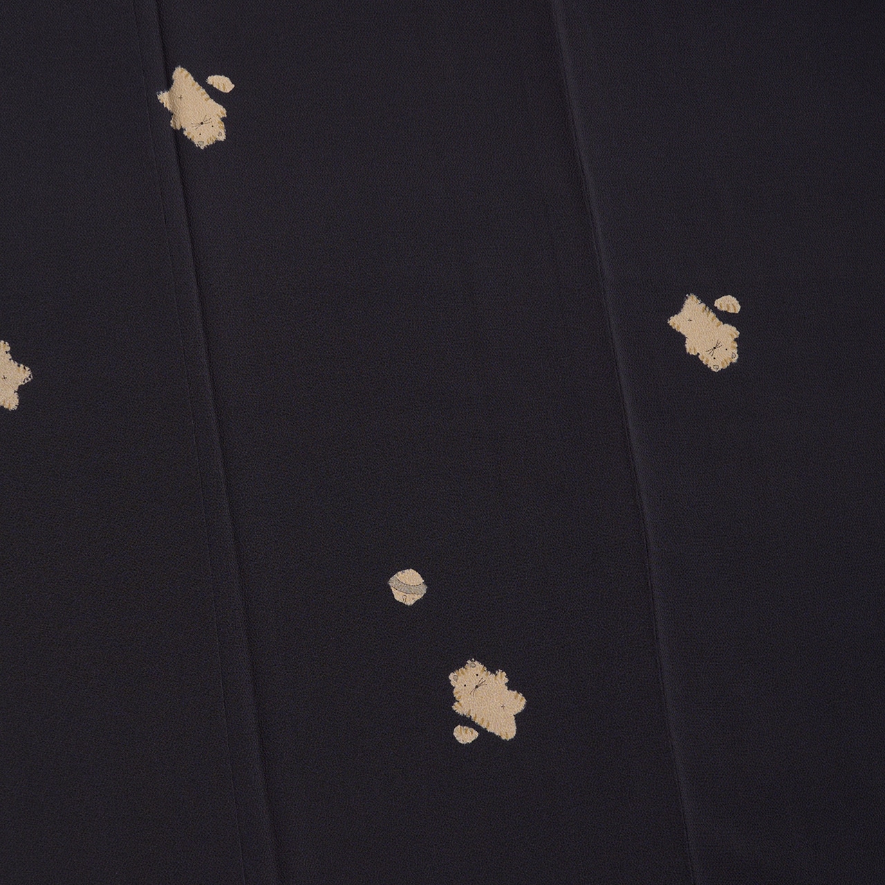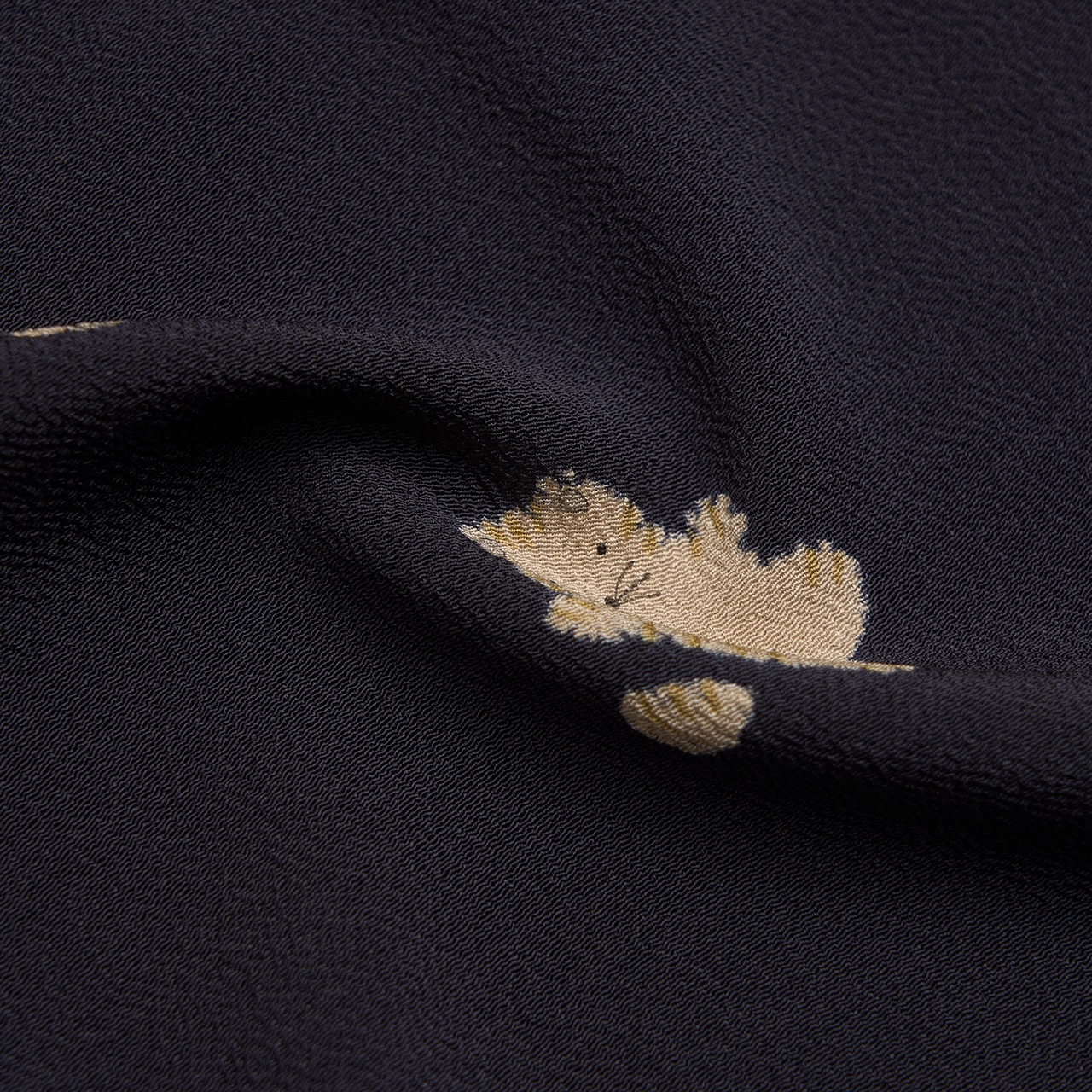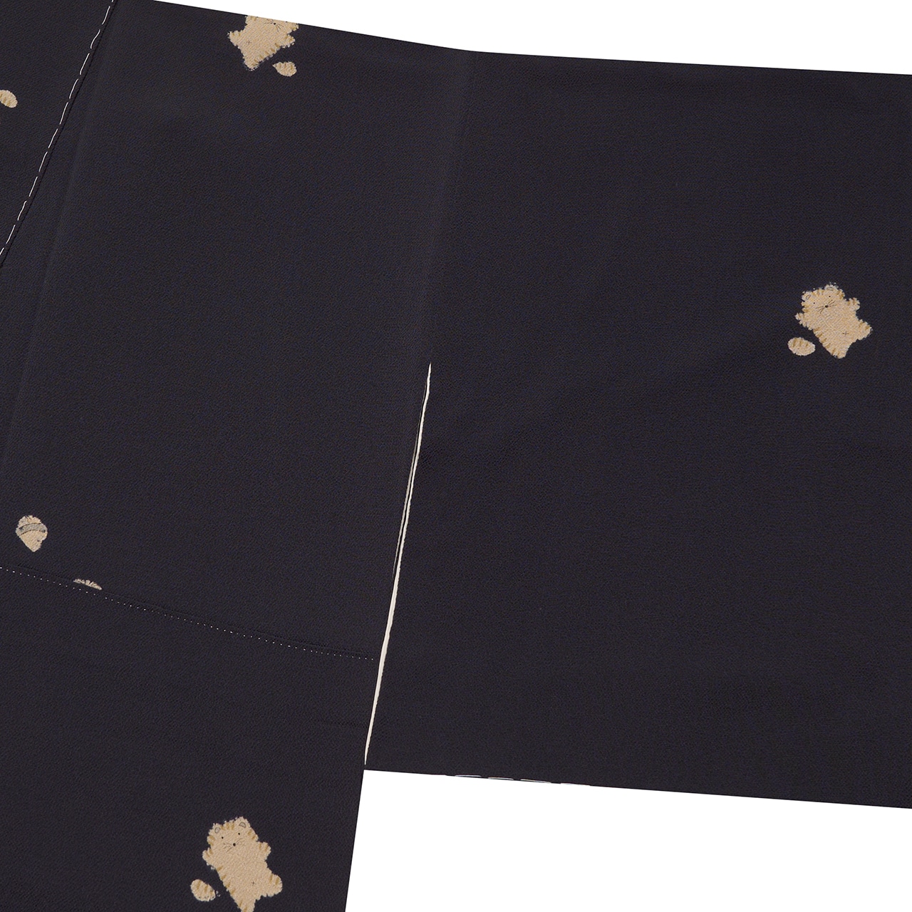 それでいて可愛らしい模様とは裏腹に、とてもシックな色使いと、絞り染めという凝った染めとなっていることでどことなく格調高さも感じられますので、帯の合わせ方によってはお召しいただける範囲も広くなるのではないでしょうか。