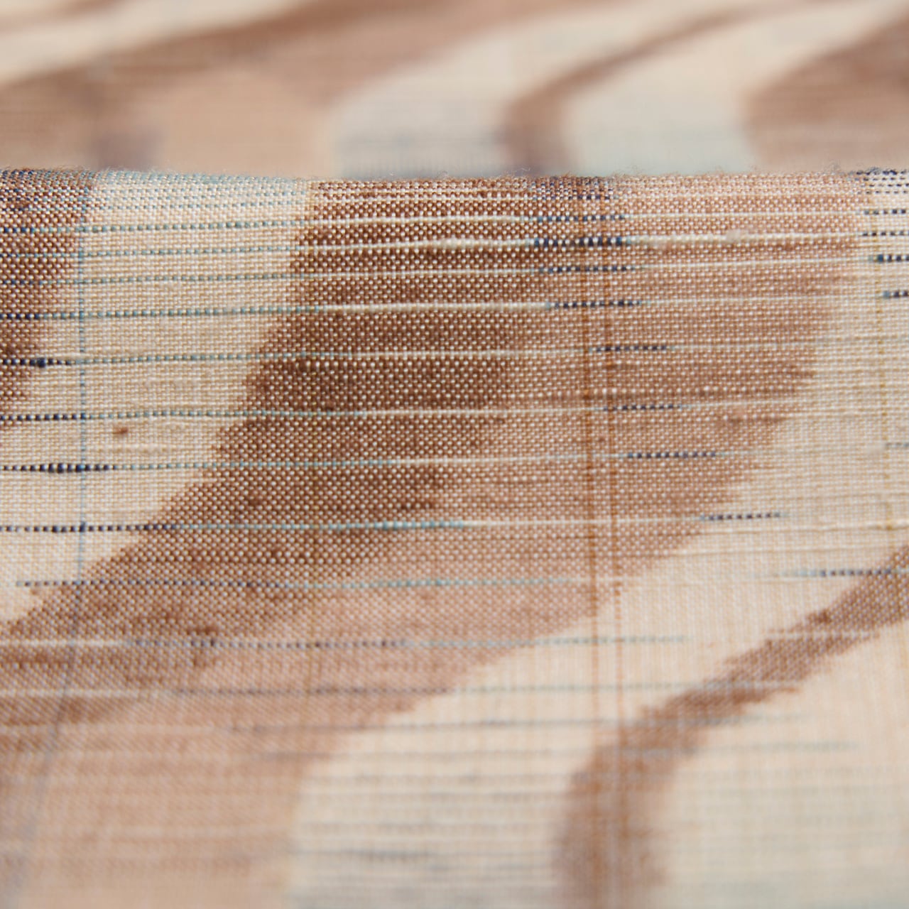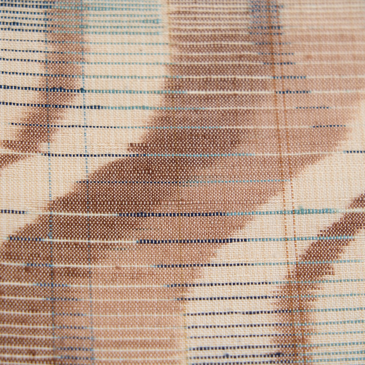曲線を描いた絣織というのは非常に難しいもので、それが全体に繋がってさらに斜めの線となっているところなど、本当に高い技術で創作されたことが見てとれます。